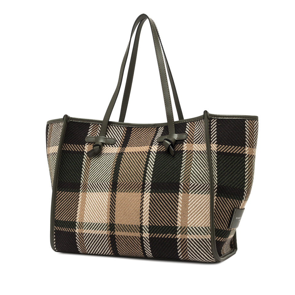 La shopping Marcella by Gianni Chiarini Firenze è realizzata in tessuto tartan. Dotata di manici in pelle e di una comoda chiusura tramite magnete, è ideale per la vita quotidiana. Il design è arricchito da profili in pelle che donano alla borsa un tocco di eleganza. Dimensioni: 38x31x16 cm.
