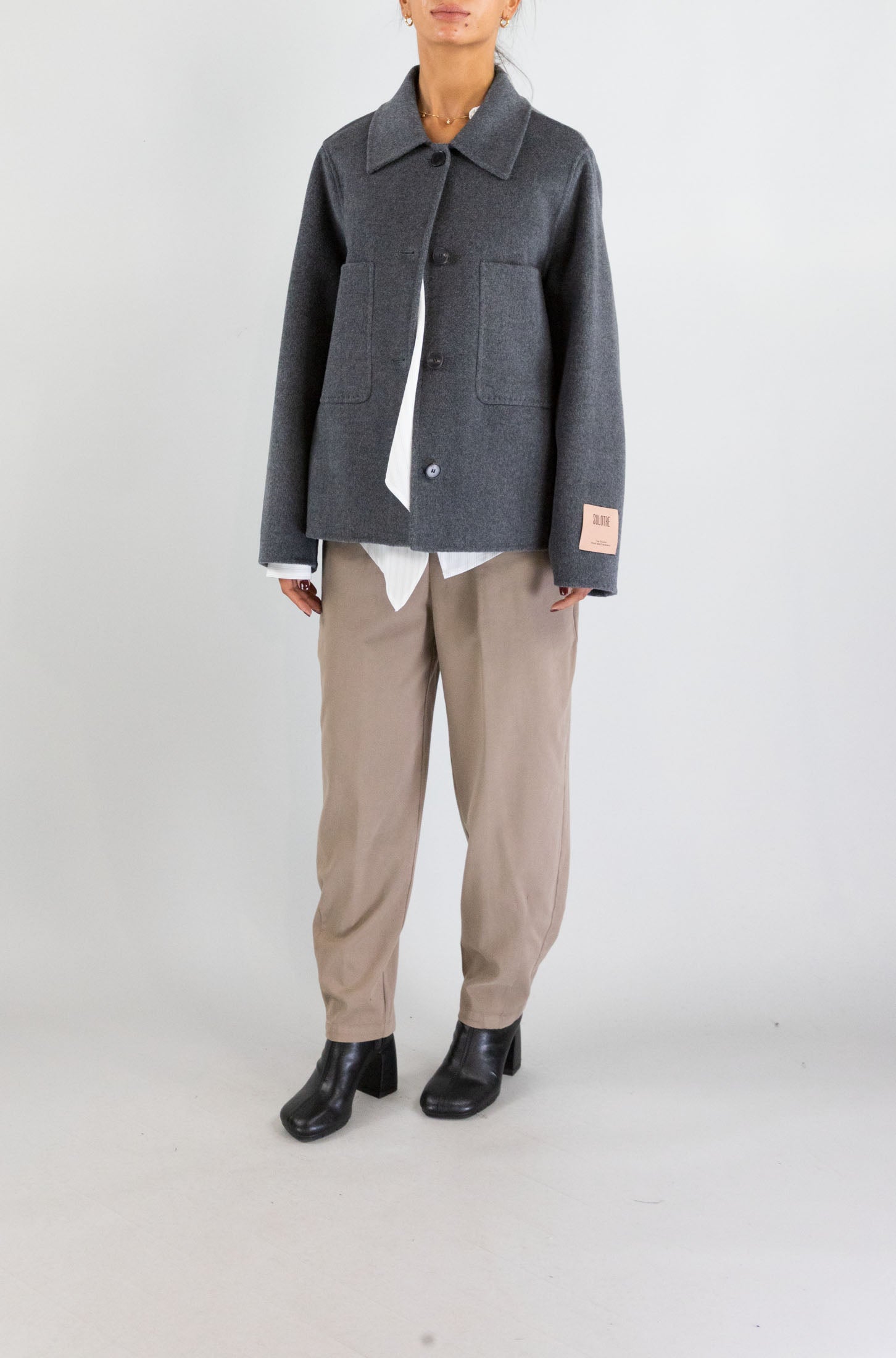 Tono neutro, eleganza assoluta. Il cappotto grigio Solotre è una scelta raffinata per completare look metropolitani o più formali. Morbido e caldo, unisce funzionalità e stile contemporaneo in un solo gesto.