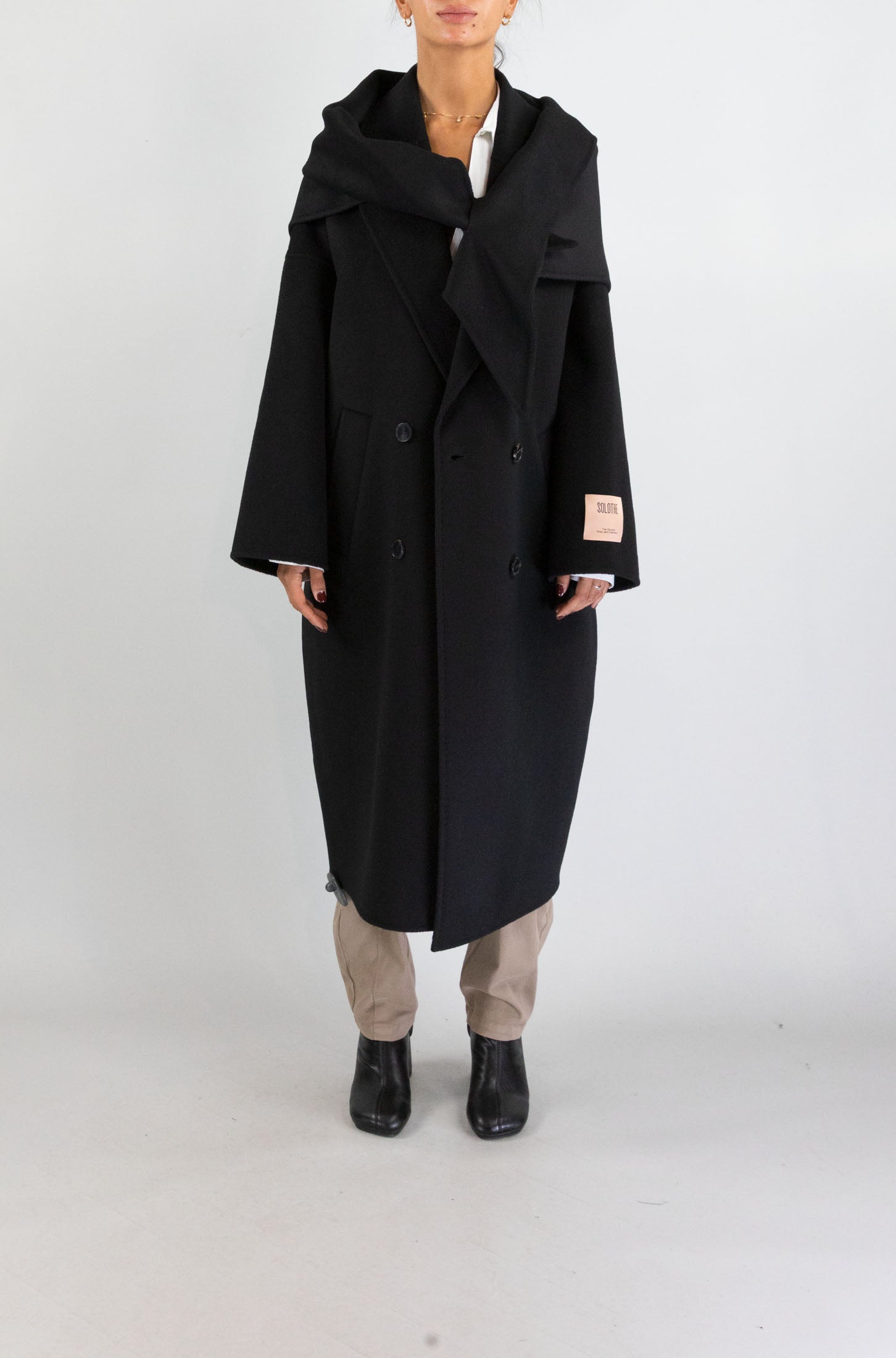 Un classico senza tempo. Il cappotto lungo nero Solotre conquista per la sua linea elegante e il colletto ampio che incornicia il viso con naturalezza. Realizzato in lana e cashmere, è il capo ideale per affrontare l’inverno con stile e comfort.
