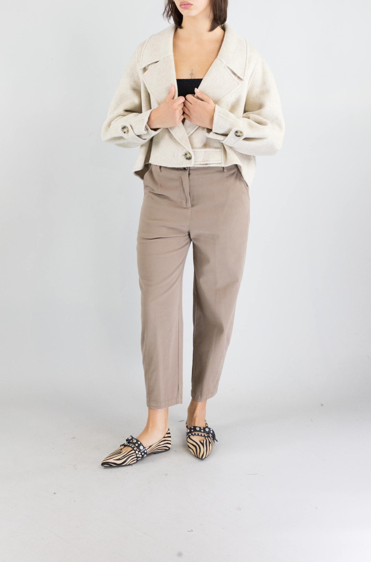 Giacca corta in lana, Vicolo, la modella indossa la taglia small