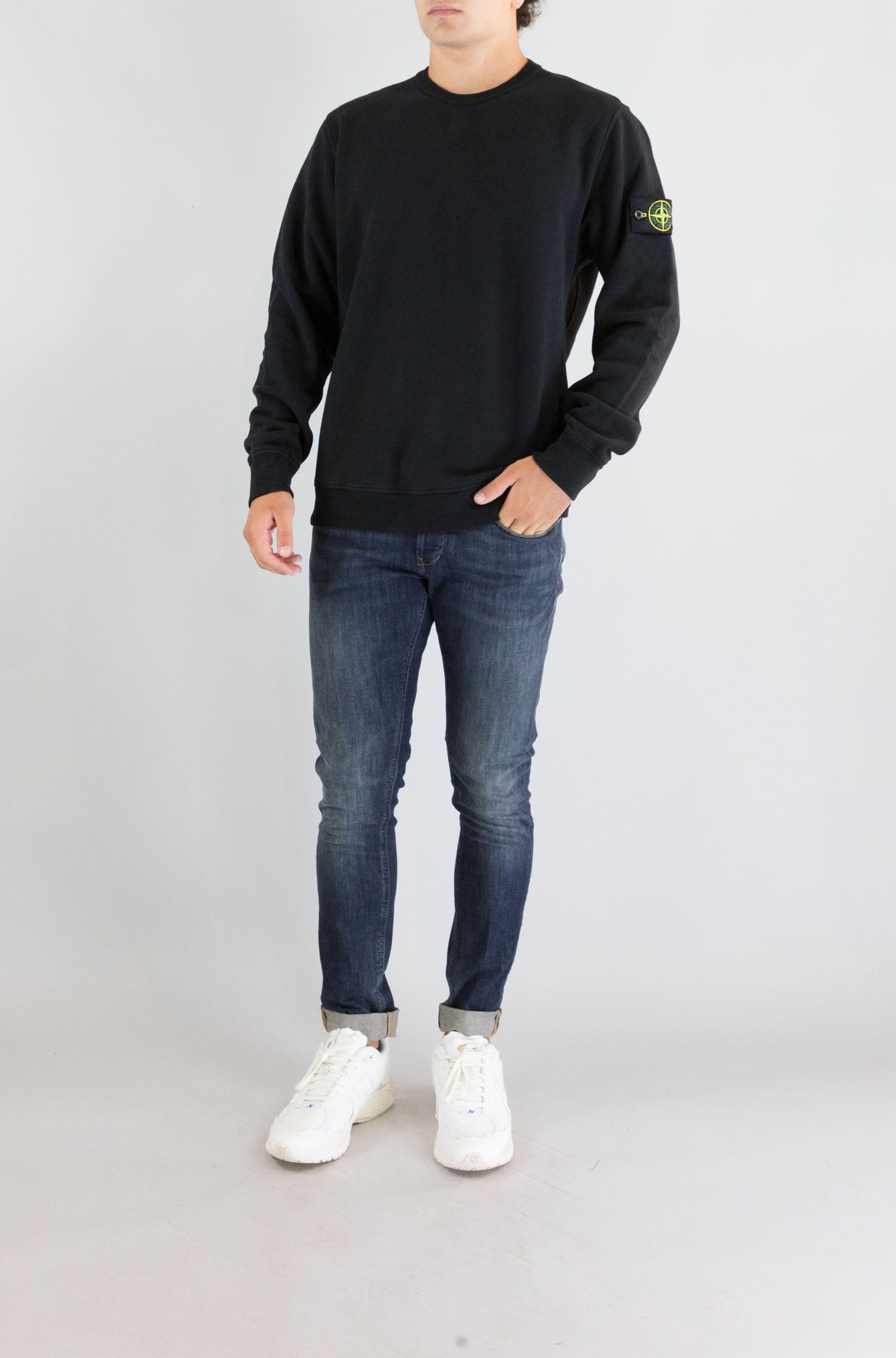 Questa felpa nera Stone Island è un classico del casualwear, con manica lunga e collo tondo. Il logo badge sul braccio sinistro ne evidenzia l'alta qualità, mentre il tessuto 100% cotone assicura comfort e traspirabilità. Un capo versatile che non può mancare nel tuo guardaroba, perfetto per ogni stagione. Il modello indossa la taglia L.