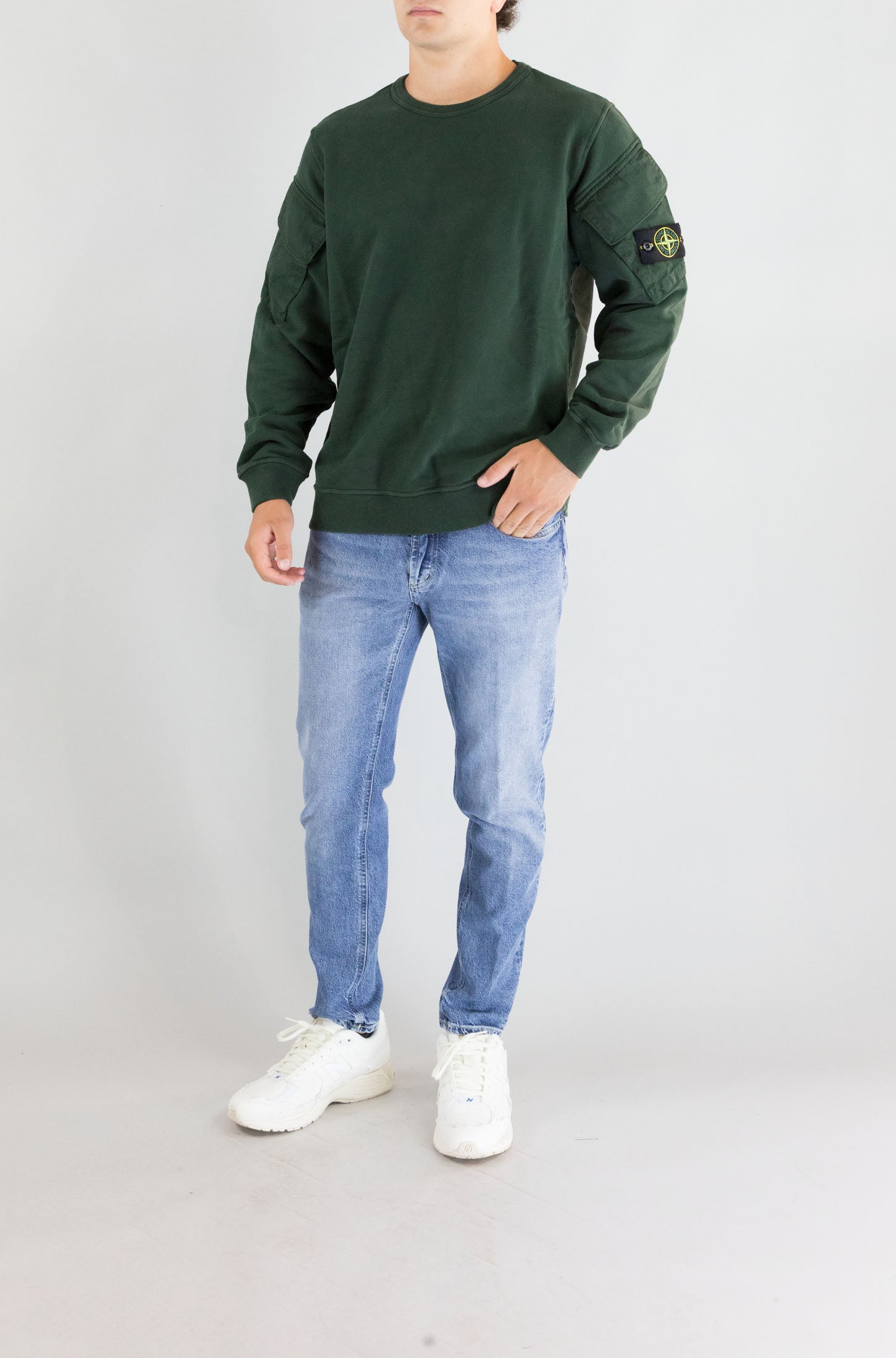 La felpa verde Stone Island è ideale per chi cerca un capo pratico ma alla moda. Con maniche lunghe, collo rotondo e il distintivo logo badge sul braccio sinistro, questa felpa è perfetta per il tempo libero. Il tessuto 100% cotone offre una vestibilità confortevole e morbida, perfetta per le giornate informali. Il modello indossa la taglia L.