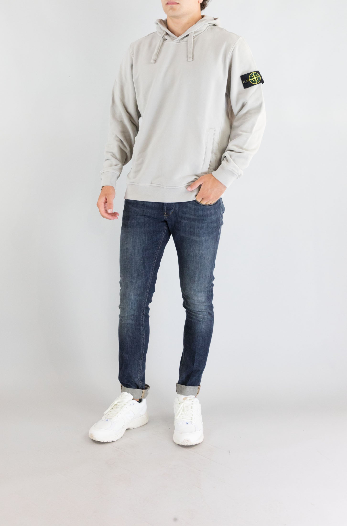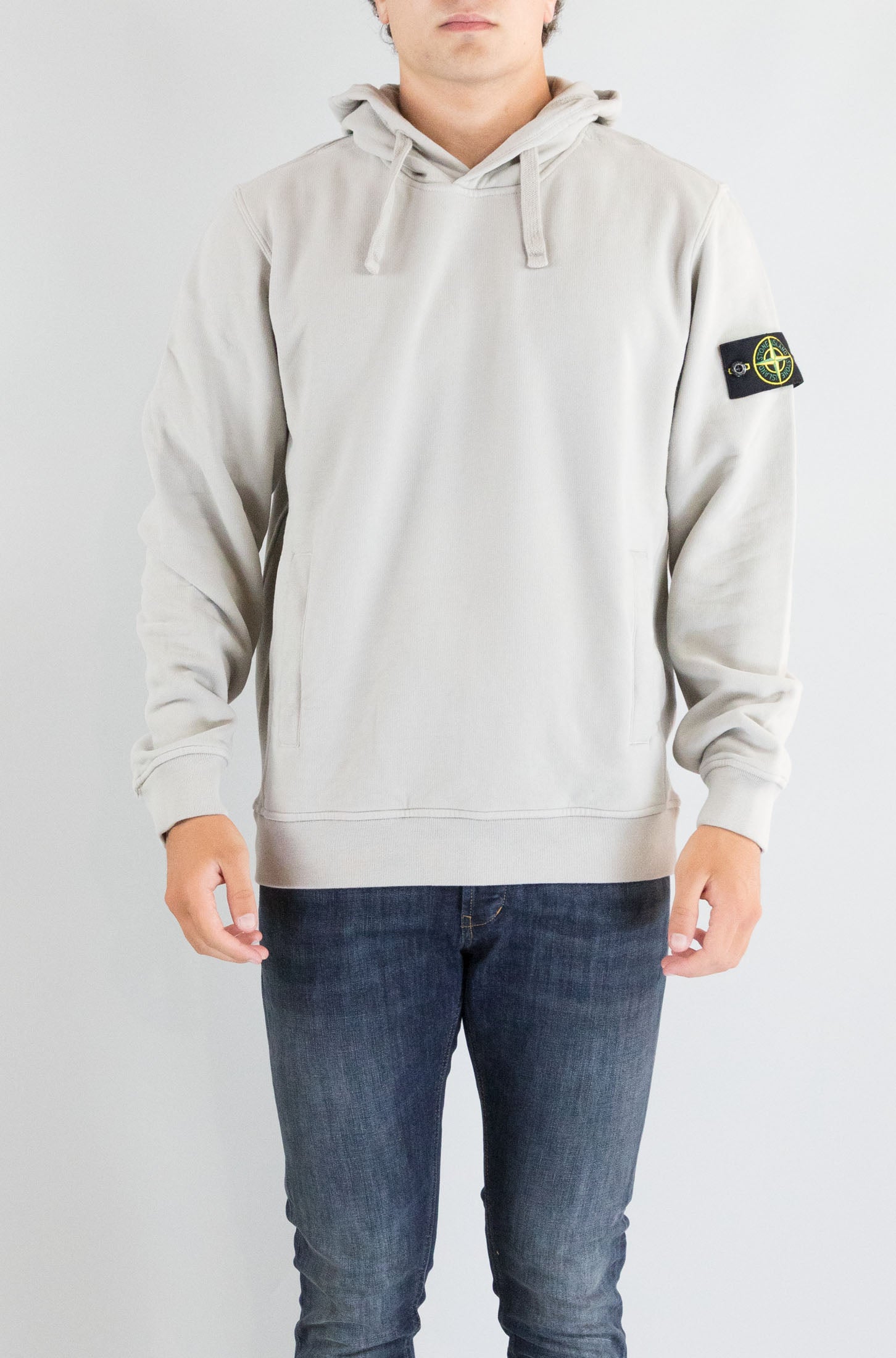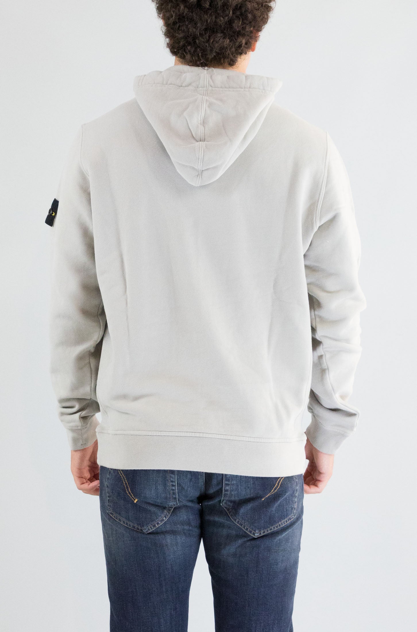 La felpa grigia Stone Island unisce stile casual e comfort. Con manica lunga e cappuccio, presenta una grande tasca sull'addome, perfetta per riporre piccoli oggetti o per aggiungere un tocco funzionale al look. Realizzata in 100% cotone, è morbida e comoda da indossare per tutta la giornata. Il modello indossa la taglia L.