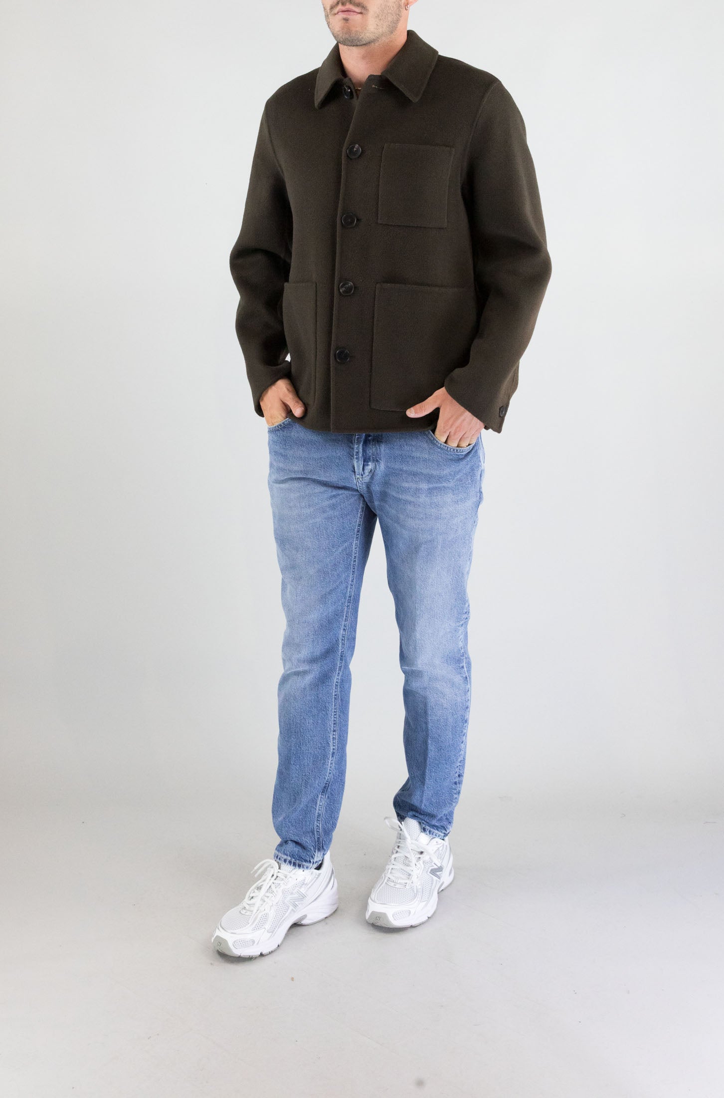 Tonalità profonde e materiali pregiati. Questo giubbotto marrone scuro Amaranto offre una vestibilità strutturata, colletto con chiusura a bottoni e tessuto caldo in lana e cashmere. Un must per le stagioni fredde.