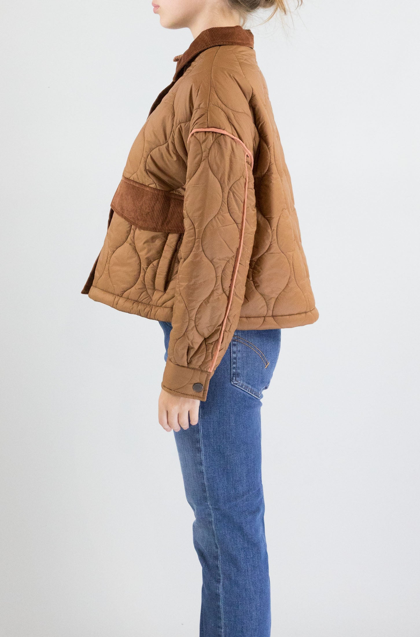 Un capo che profuma d'autunno. Questo giubbotto color rum di Indi&Cold unisce tonalità calde e taglio classico, con colletto, bottoni frontali e pratiche tasche laterali. Ideale per accompagnarti con stile nelle giornate più fresche.