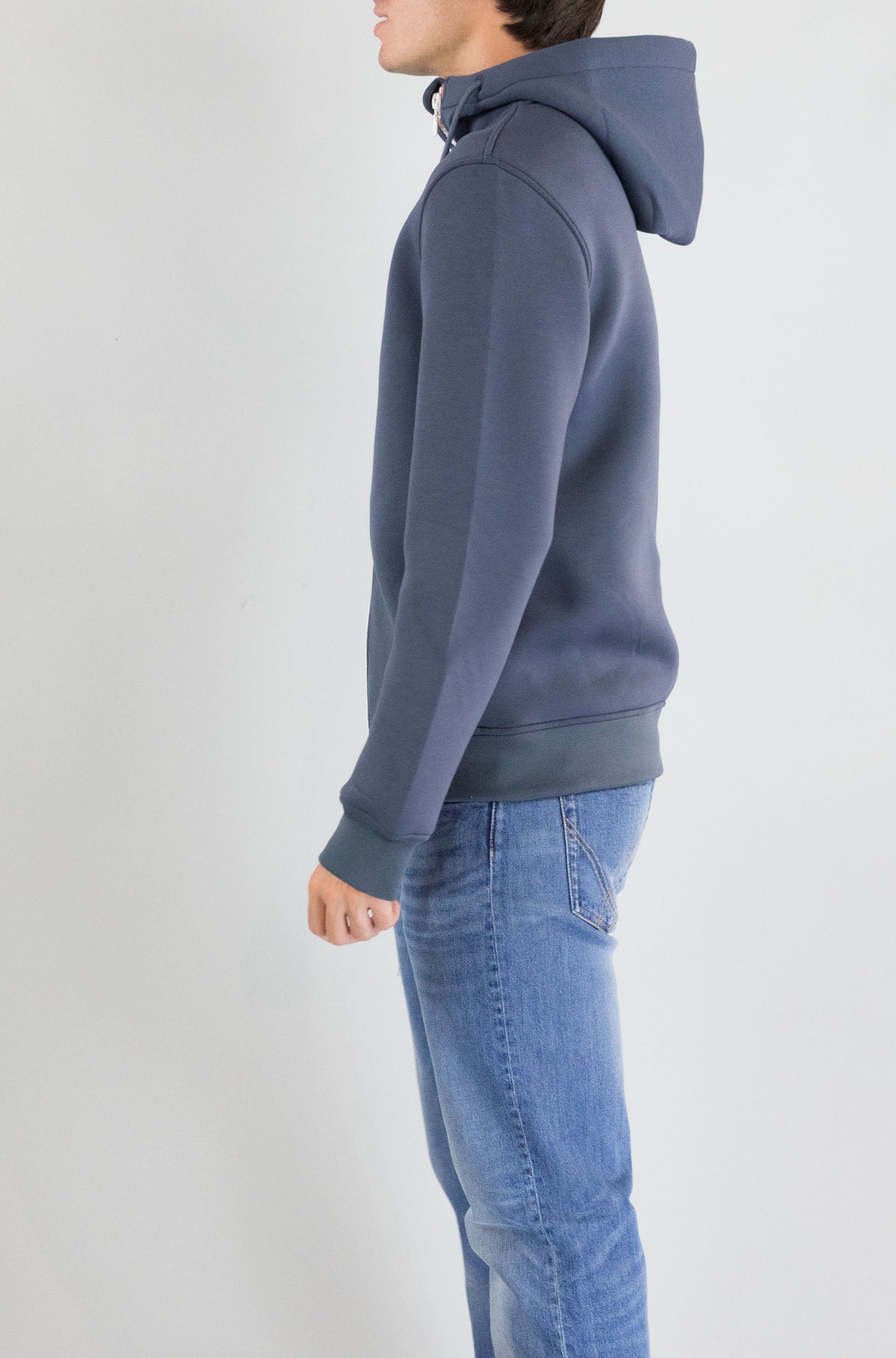 Un must contemporaneo. Felpa nera Kway con cappuccio regolabile, zip centrale e tasche laterali. Il mini logo sul petto aggiunge identità senza eccessi. Ideale per look urbani e rilassati.