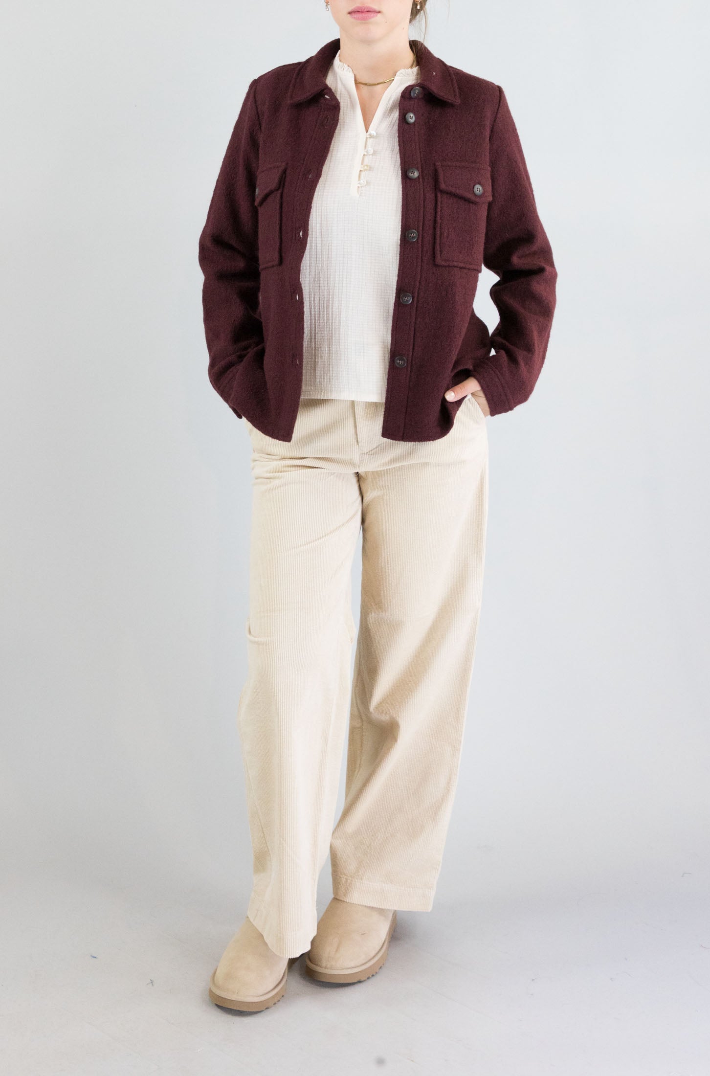 Colore deciso, anima femminile. Giacca bordeaux Nice Things con colletto, bottoni frontali e pratiche tasche laterali. Un capo in lana pura dalla forte personalità.