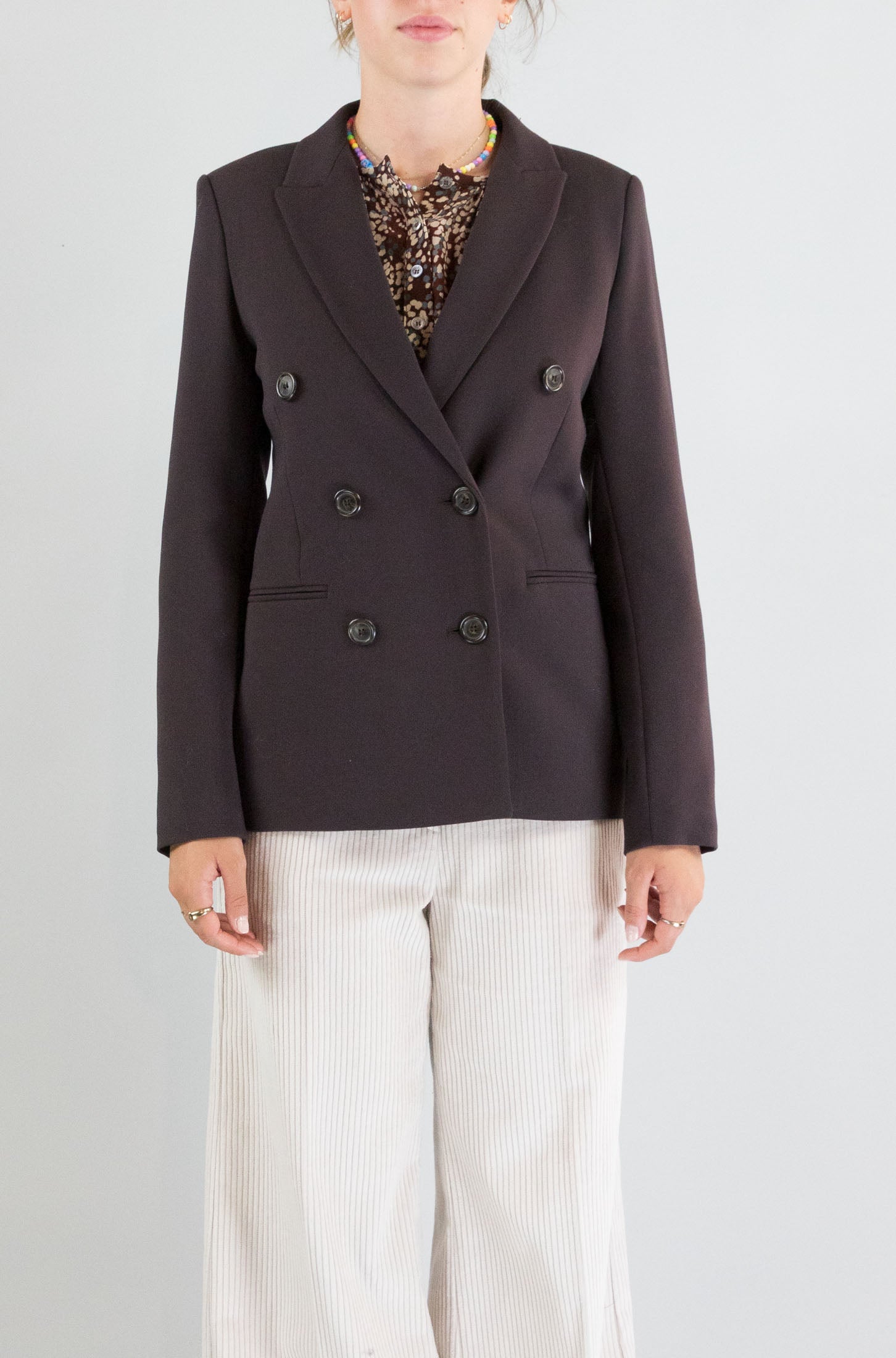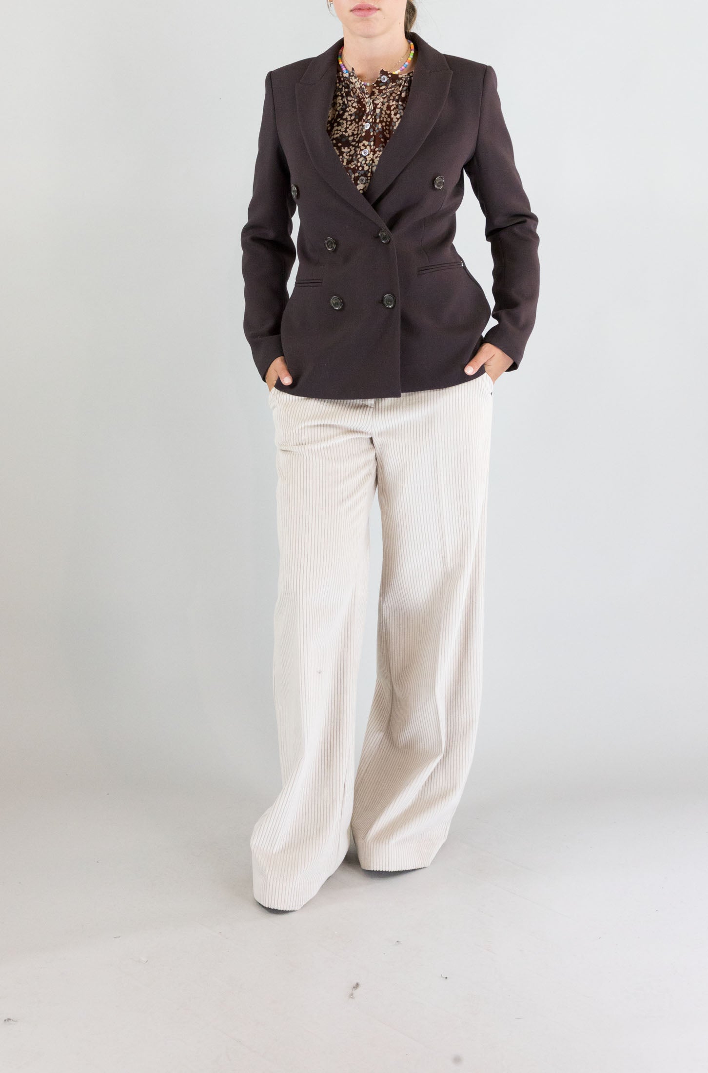 Linee pulite e taglio sartoriale per questa giacca marrone Ottod’ame. Il doppio bottone sul colletto e le tasche laterali creano un equilibrio tra praticità e stile, ideale per look formali e smart casual.