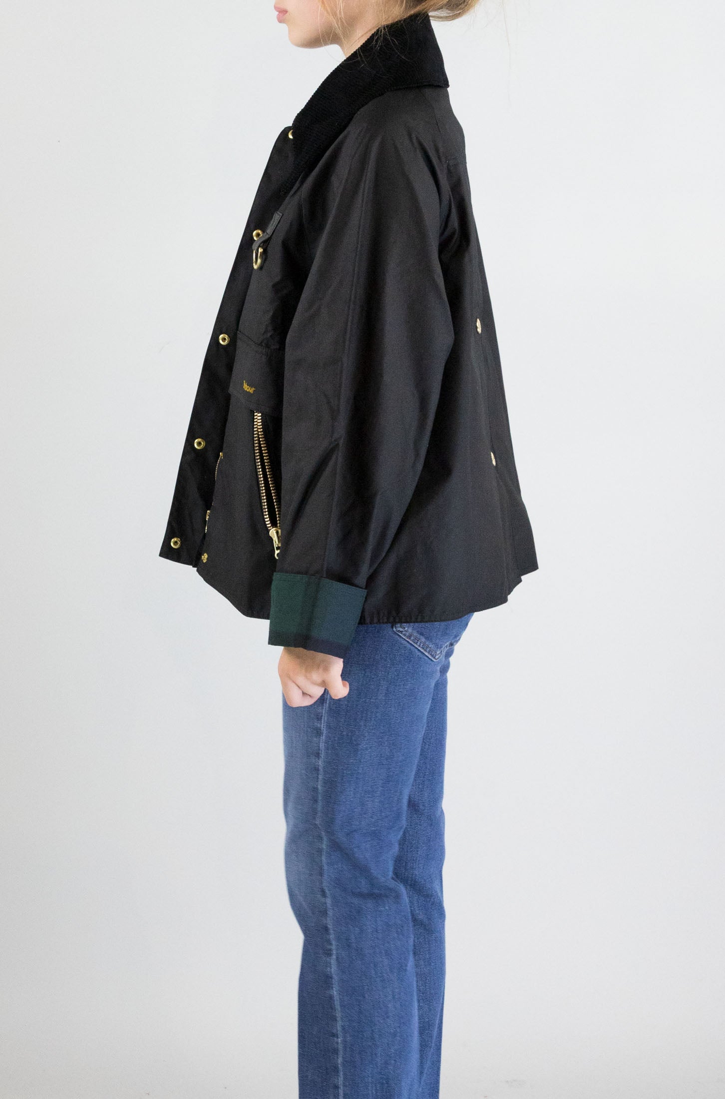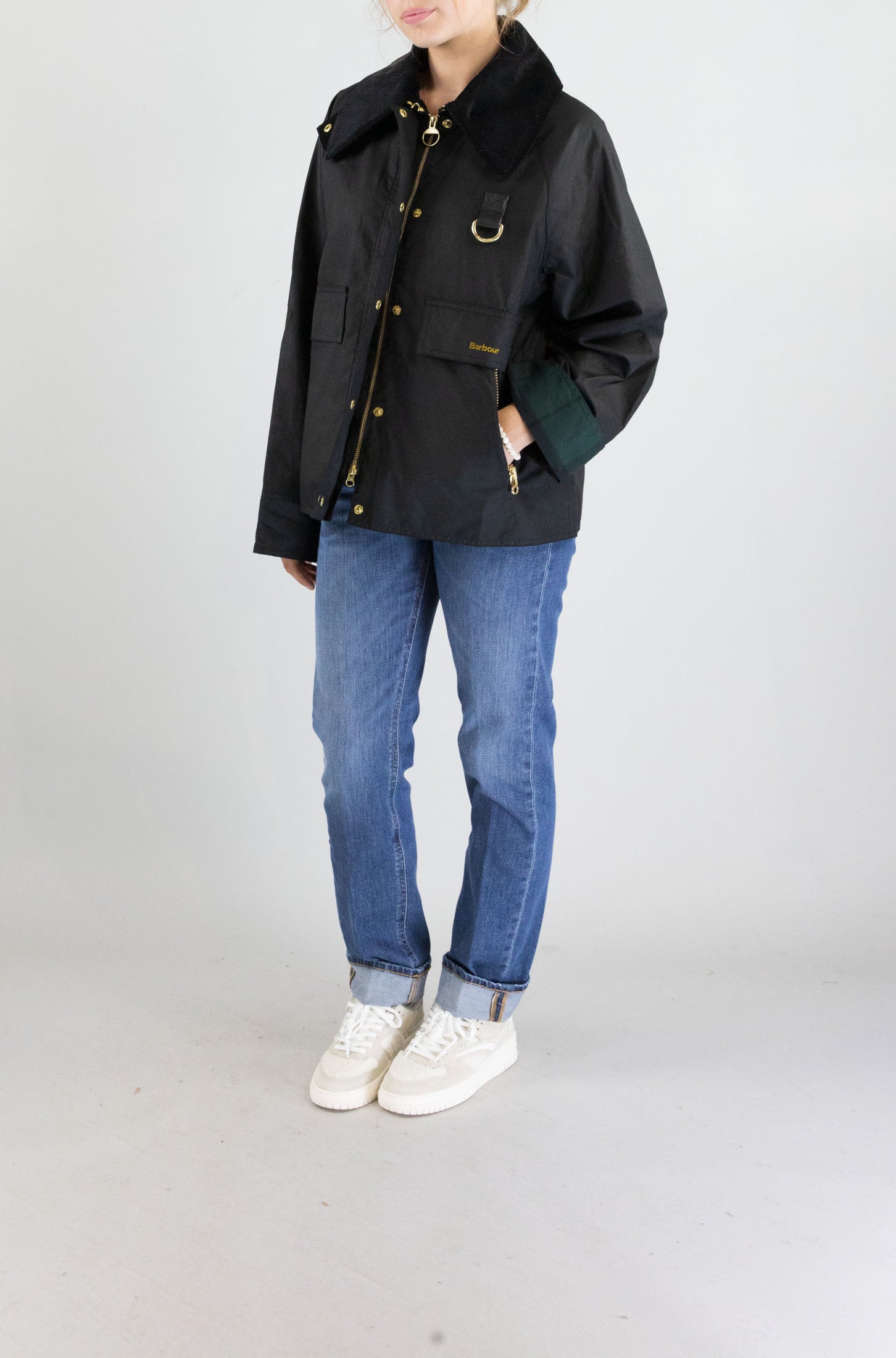 Design robusto con un tocco urban. Giubbotto nero Barbour con maniche lunghe, colletto imbottito e doppia chiusura con zip e bottoni. Le tasche laterali completano il look funzionale. Perfetto per affrontare l’inverno con stile.