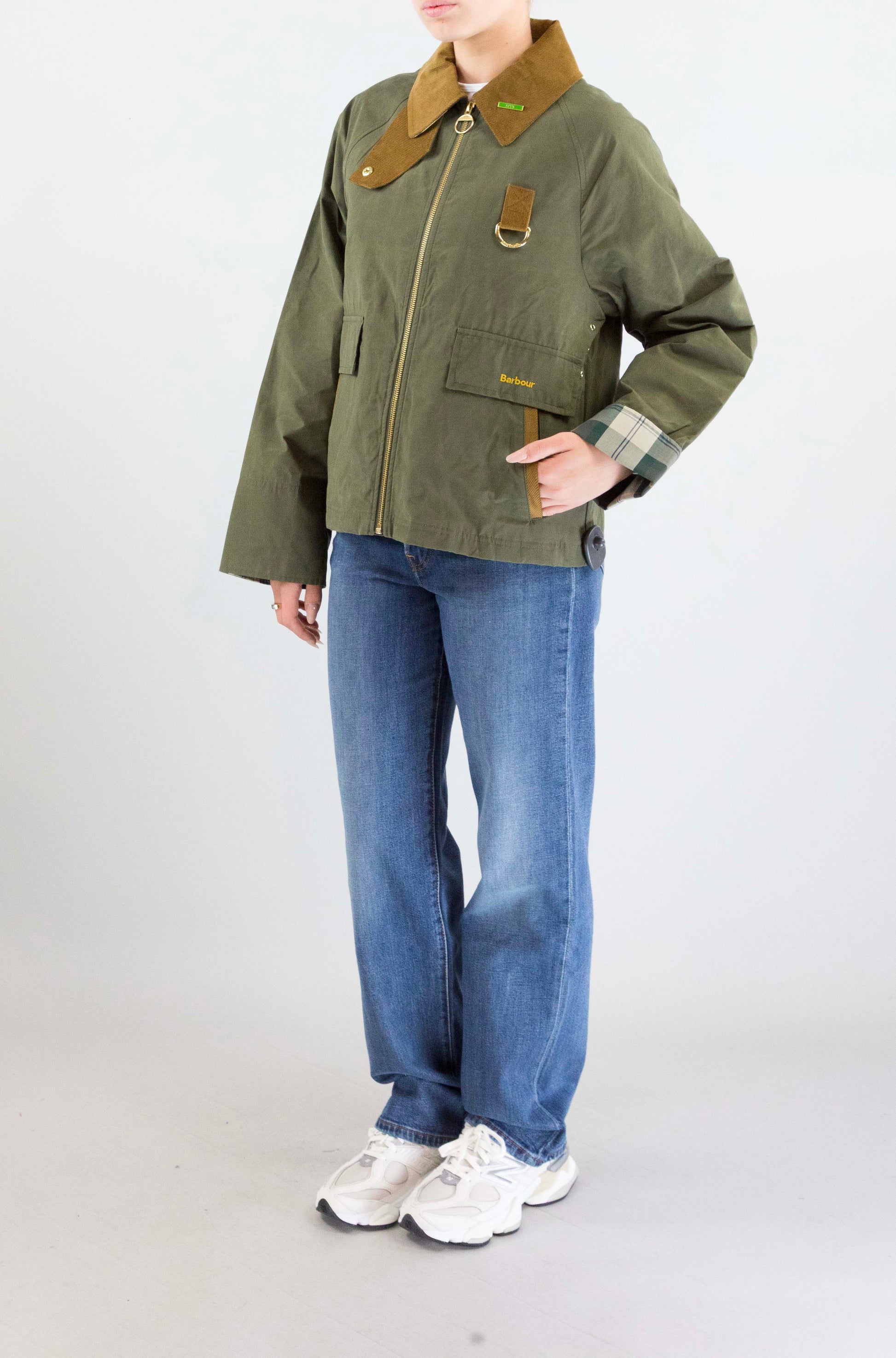 Tradizione british e spirito contemporaneo. Il giubbotto verde Barbour con maniche a quadri e colletto a costine richiama l’estetica heritage del brand, reinterpretata in chiave moderna. Perfetto per un look casual ricercato, tra città e weekend all’aria aperta.