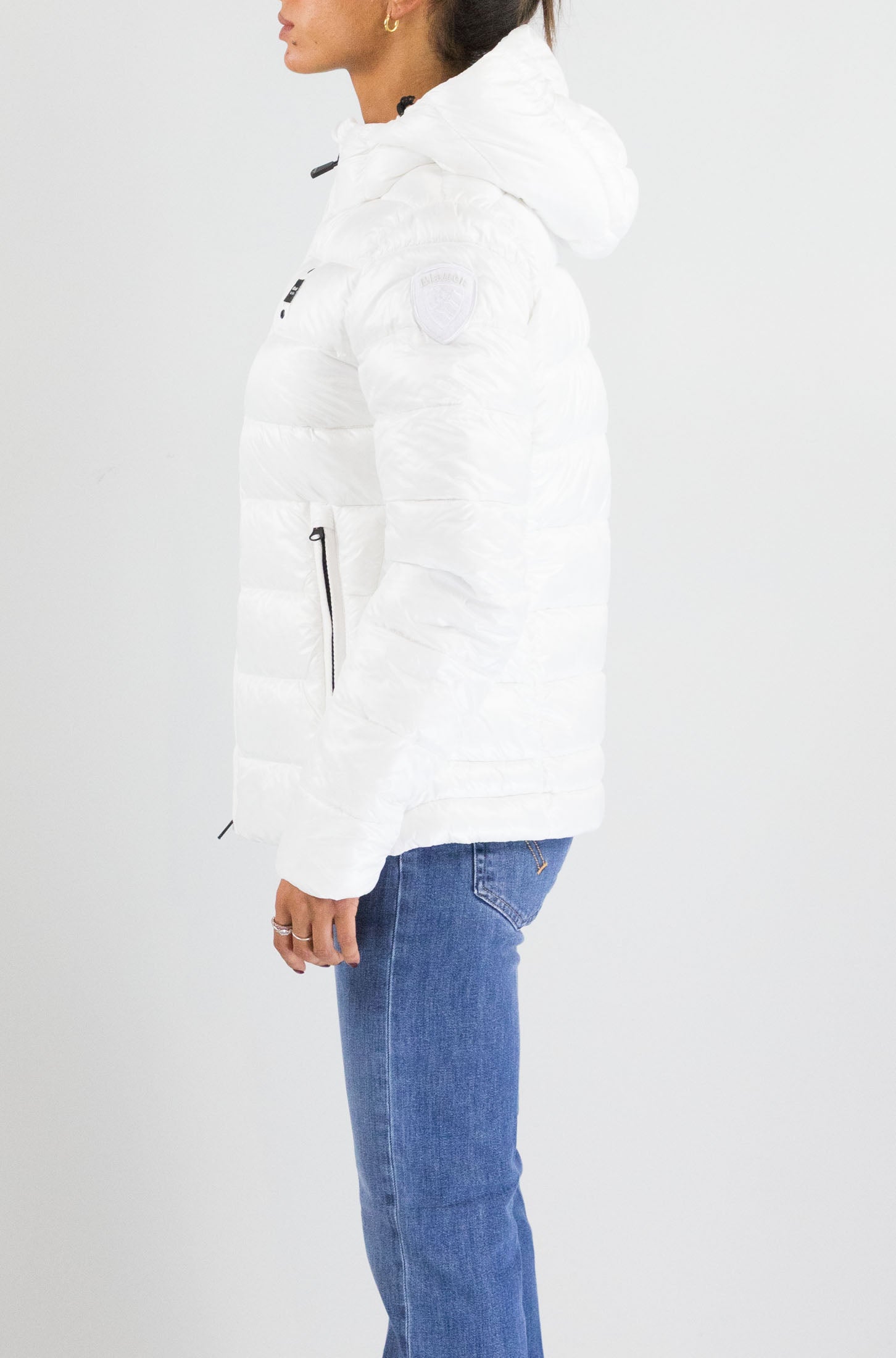 Dal taglio moderno e pulito, questo giubbotto bianco di Blauer è perfetto per uno stile pratico ma ricercato. Il cappuccio integrato e il mini logo sul braccio aggiungono un tocco distintivo.