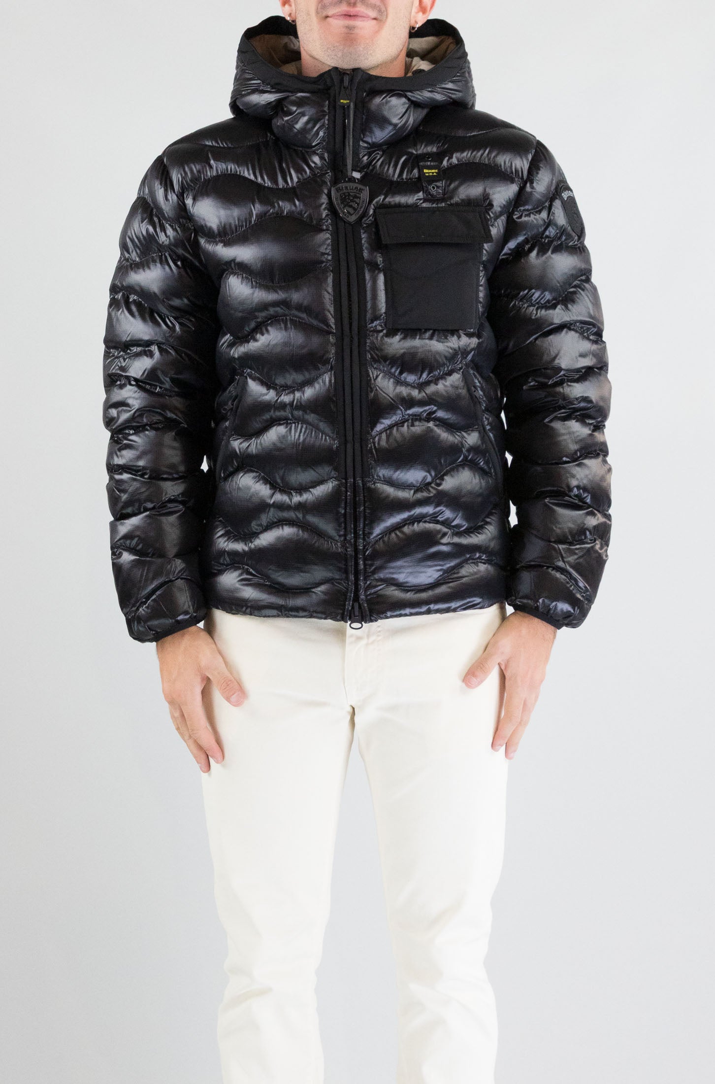 Design tecnico e carattere deciso per questo giubbotto nero Blauer. Il cappuccio e il taschino sul petto ne fanno un capo pratico e dinamico, ideale per affrontare ogni giornata con stile.