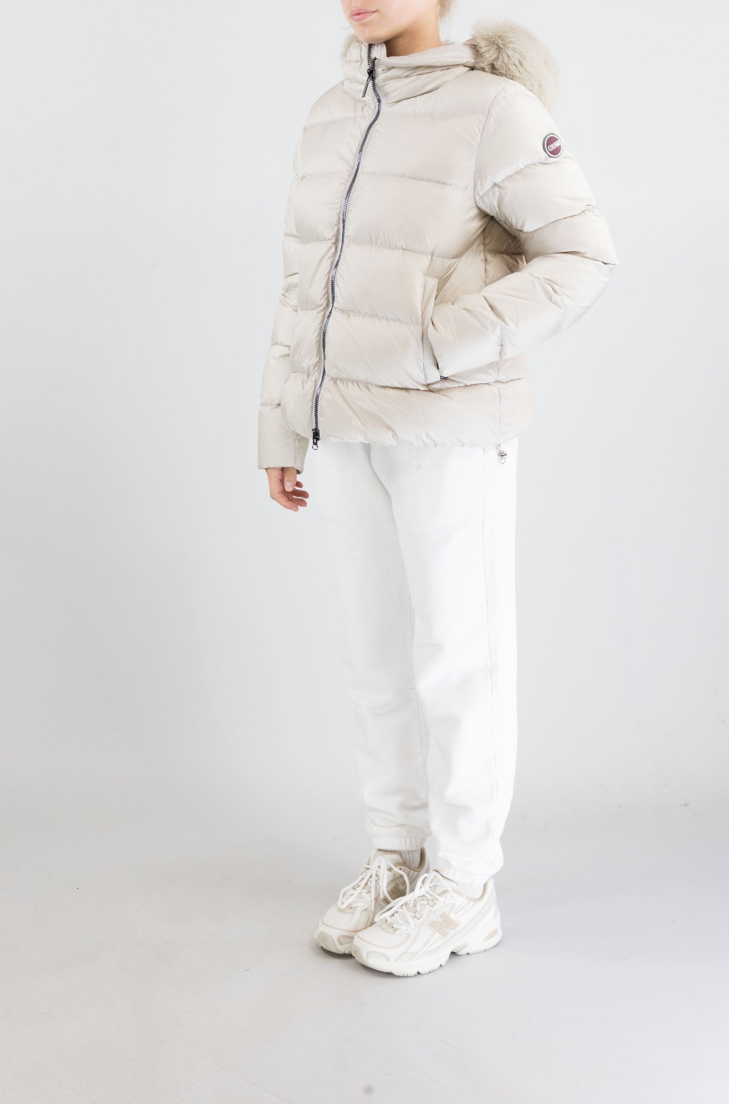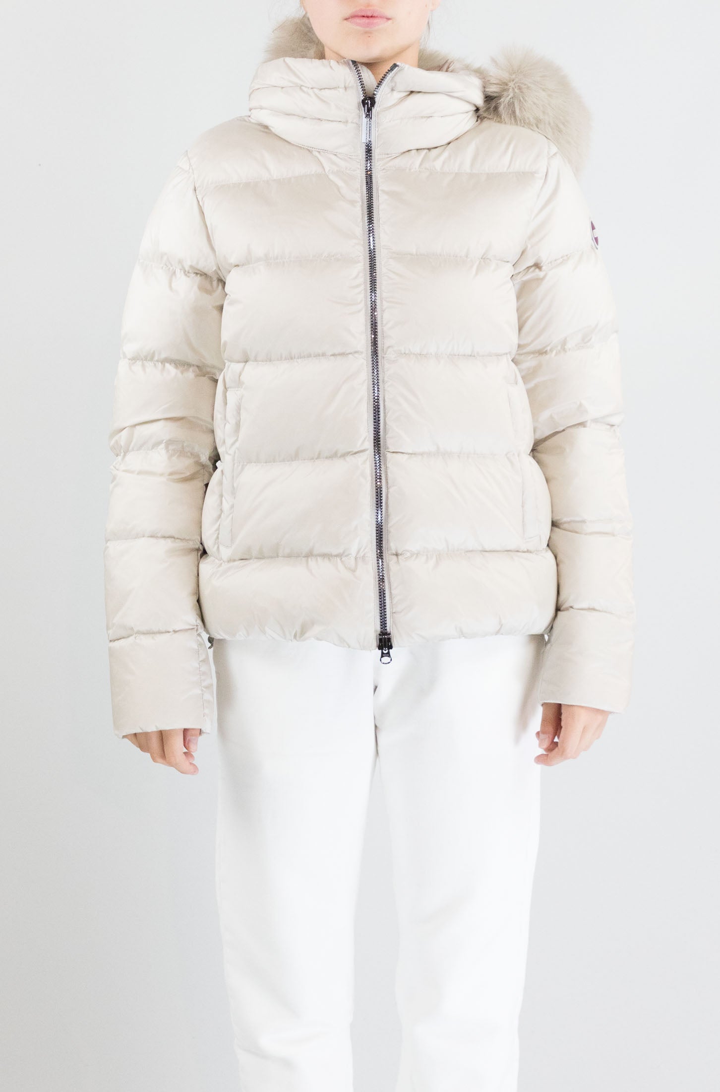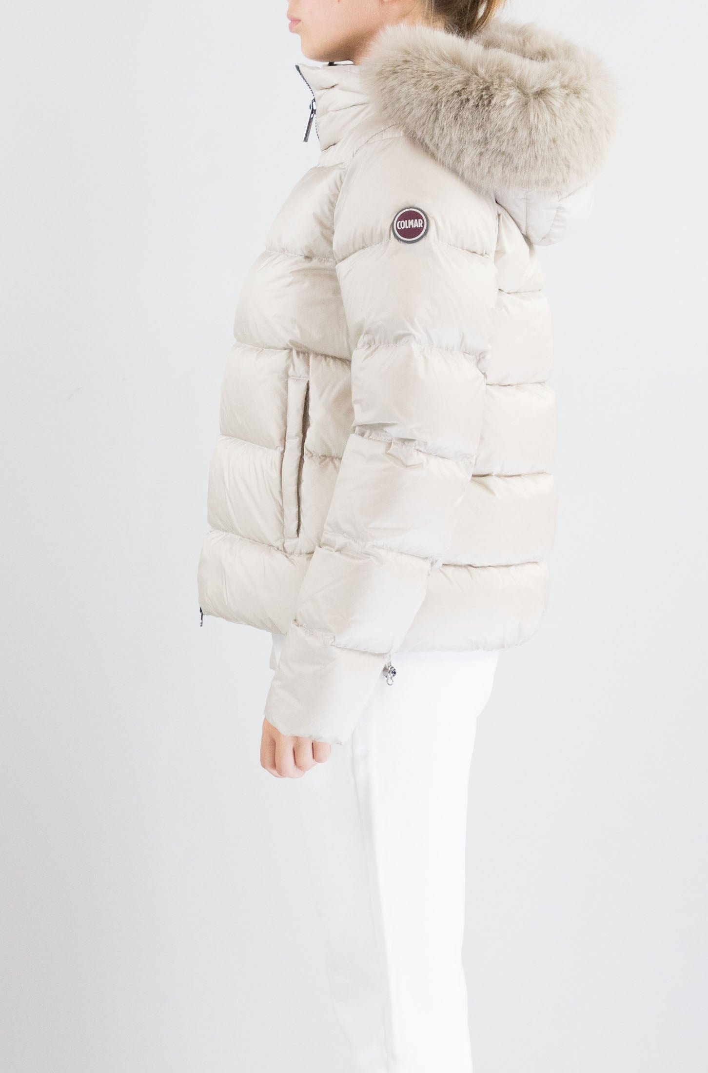Tecnico, caldo e glamour. Il giubbotto bianco Colmar, con cappuccio rifinito in pelo e logo laterale, combina protezione e stile. Perfetto per affrontare l’inverno con eleganza e comfort.