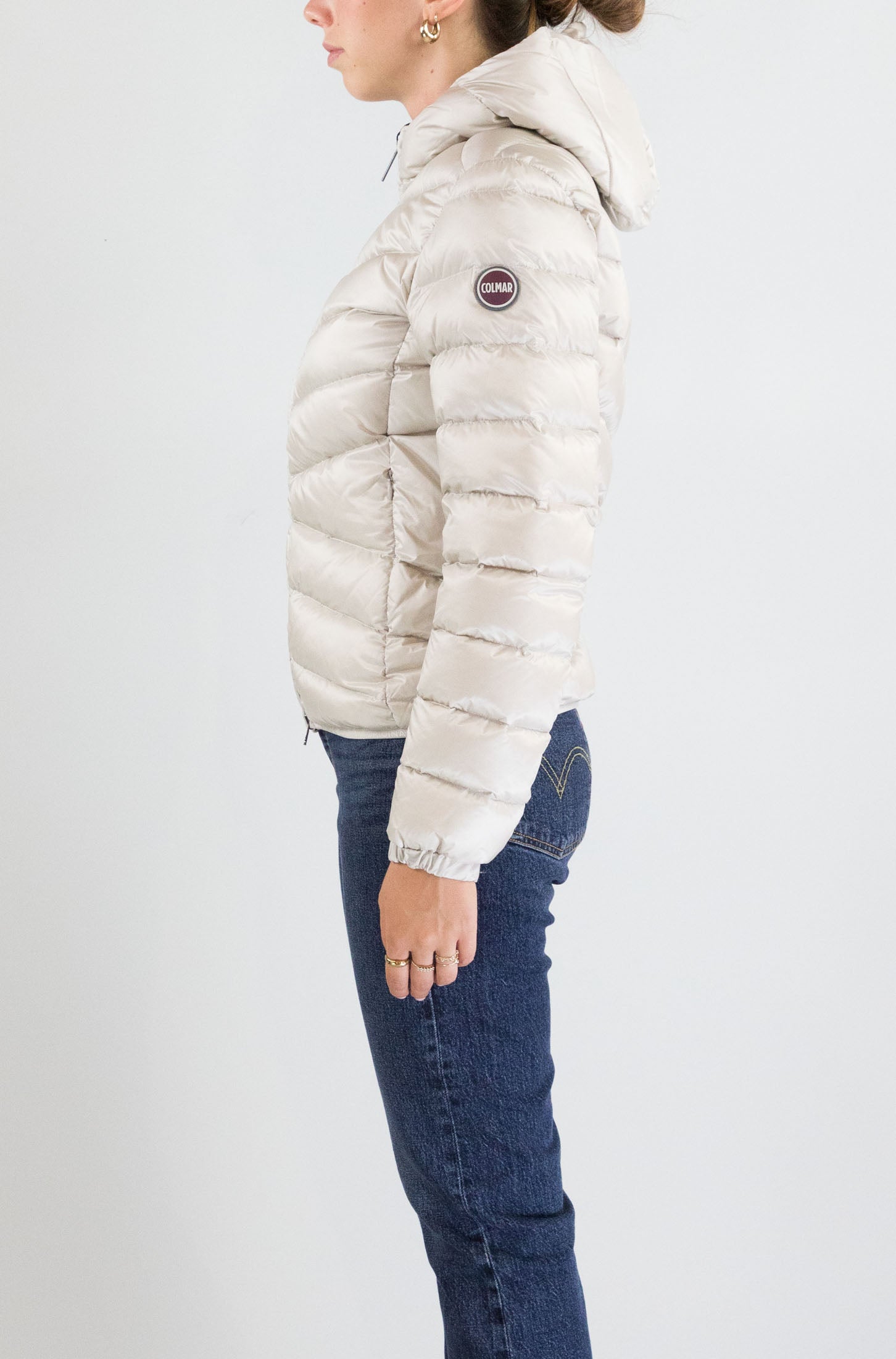 Il piumino bianco perla Colmar è un capolavoro di eleganza e funzionalità, perfetto per affrontare le giornate fredde con stile. Con maniche lunghe e cappuccio, presenta una chiusura a zip e tasche laterali pratiche per portare con te tutto il necessario. Il mini logo badge sul braccio sinistro conferisce un tocco di classe, mentre il tessuto in 100% poliammidica assicura una protezione ottimale dal freddo. La modella indossa la taglia S.