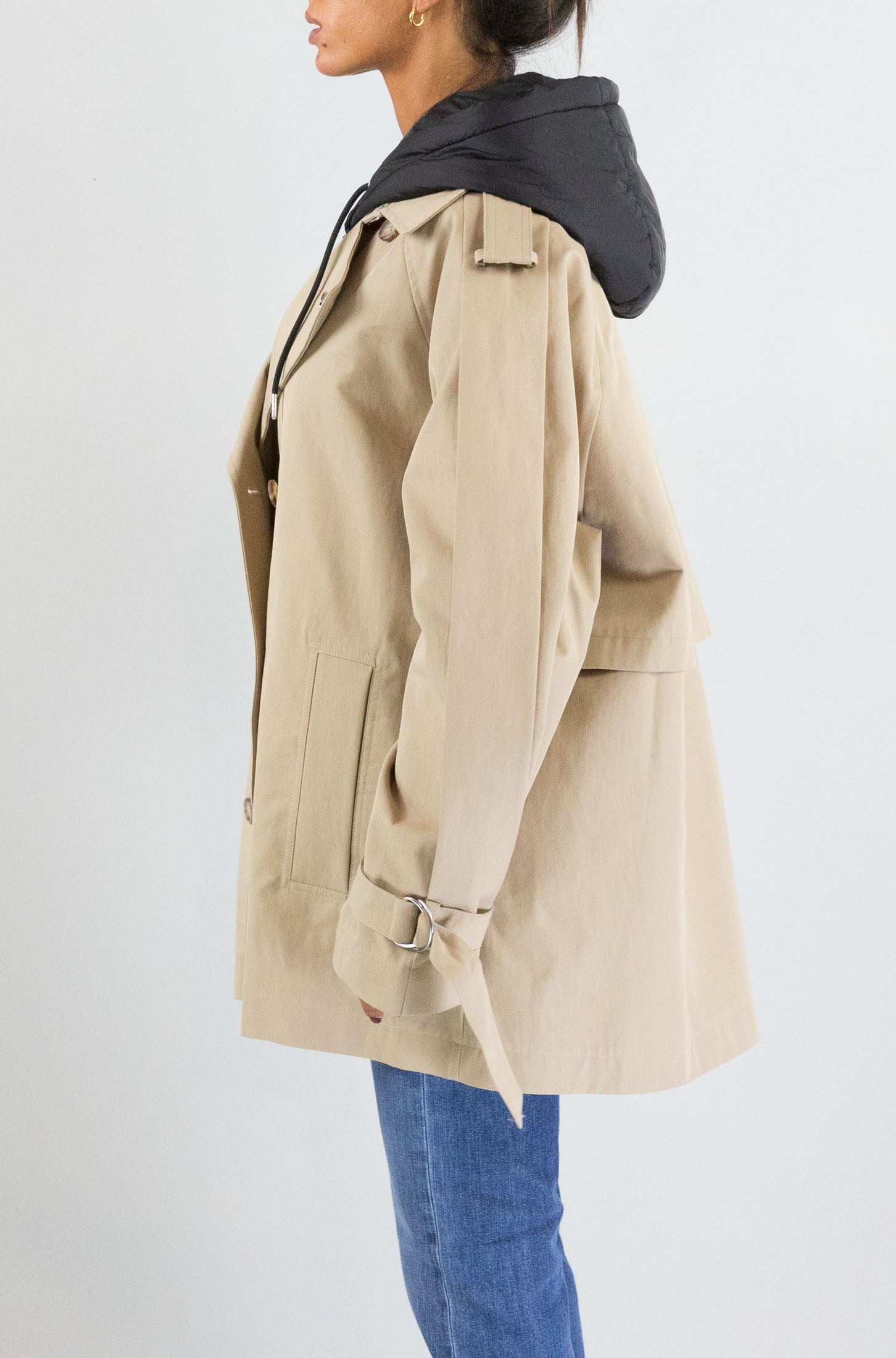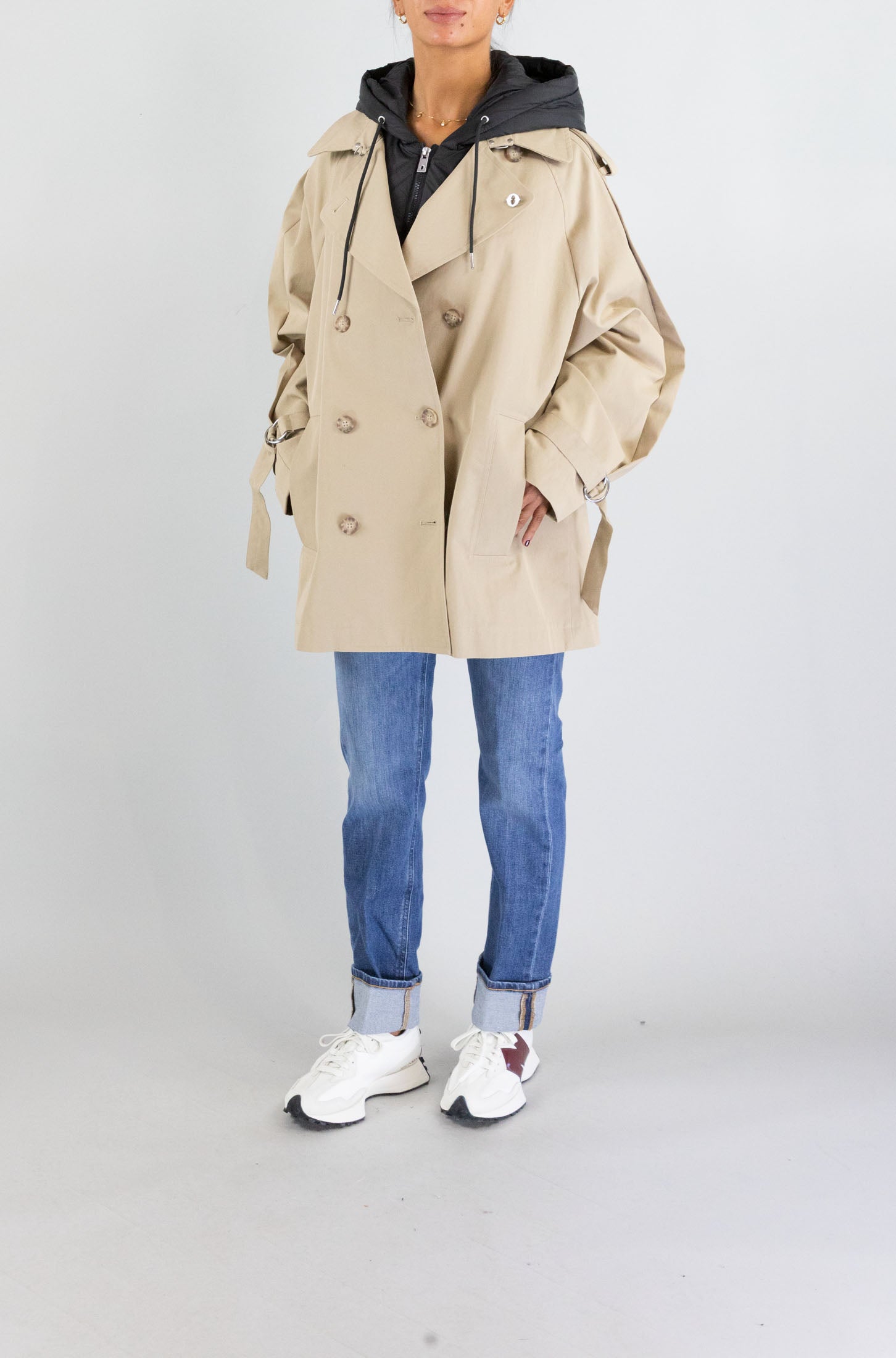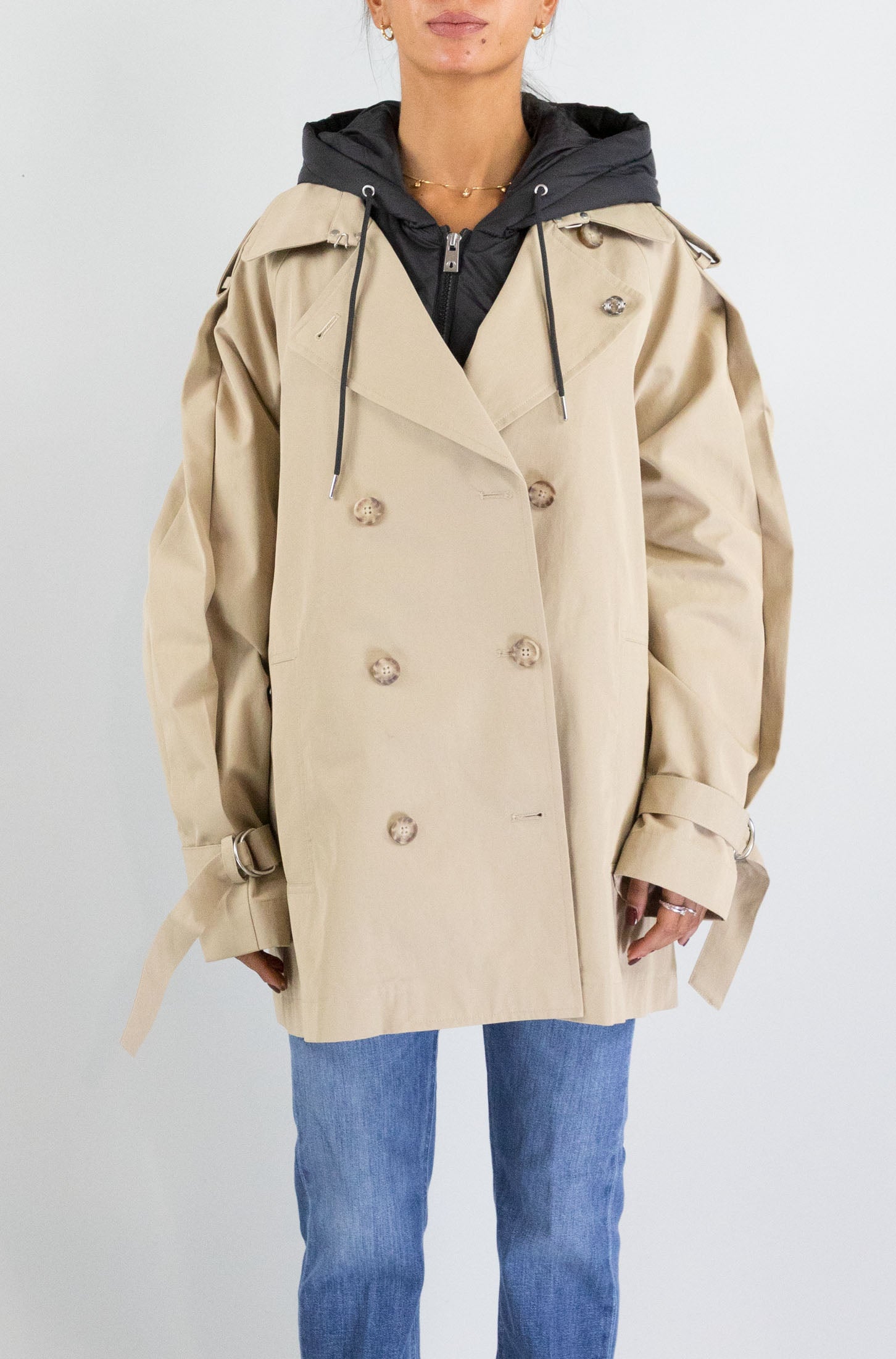 Dal gusto raffinato e contemporaneo, questa giacca beige con cappuccio e chiusura a doppi bottoni è un capo versatile per la mezza stagione. Firmata Ottod’ame, unisce leggerezza e design curato nei dettagli.