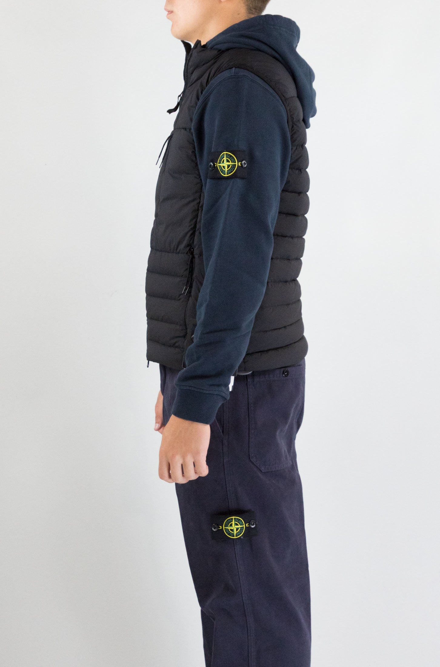Versatilità e design tecnico. Il gilet nero Stone Island, con chiusura a zip e tasche laterali, è realizzato in tessuto elastico e resistente. Ideale come strato intermedio o capo principale per un look metropolitano.