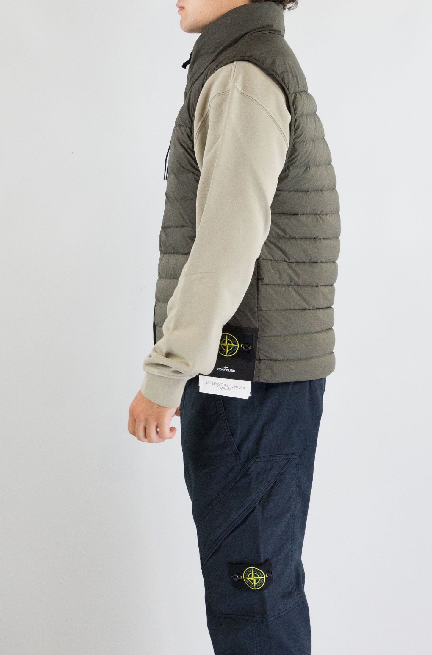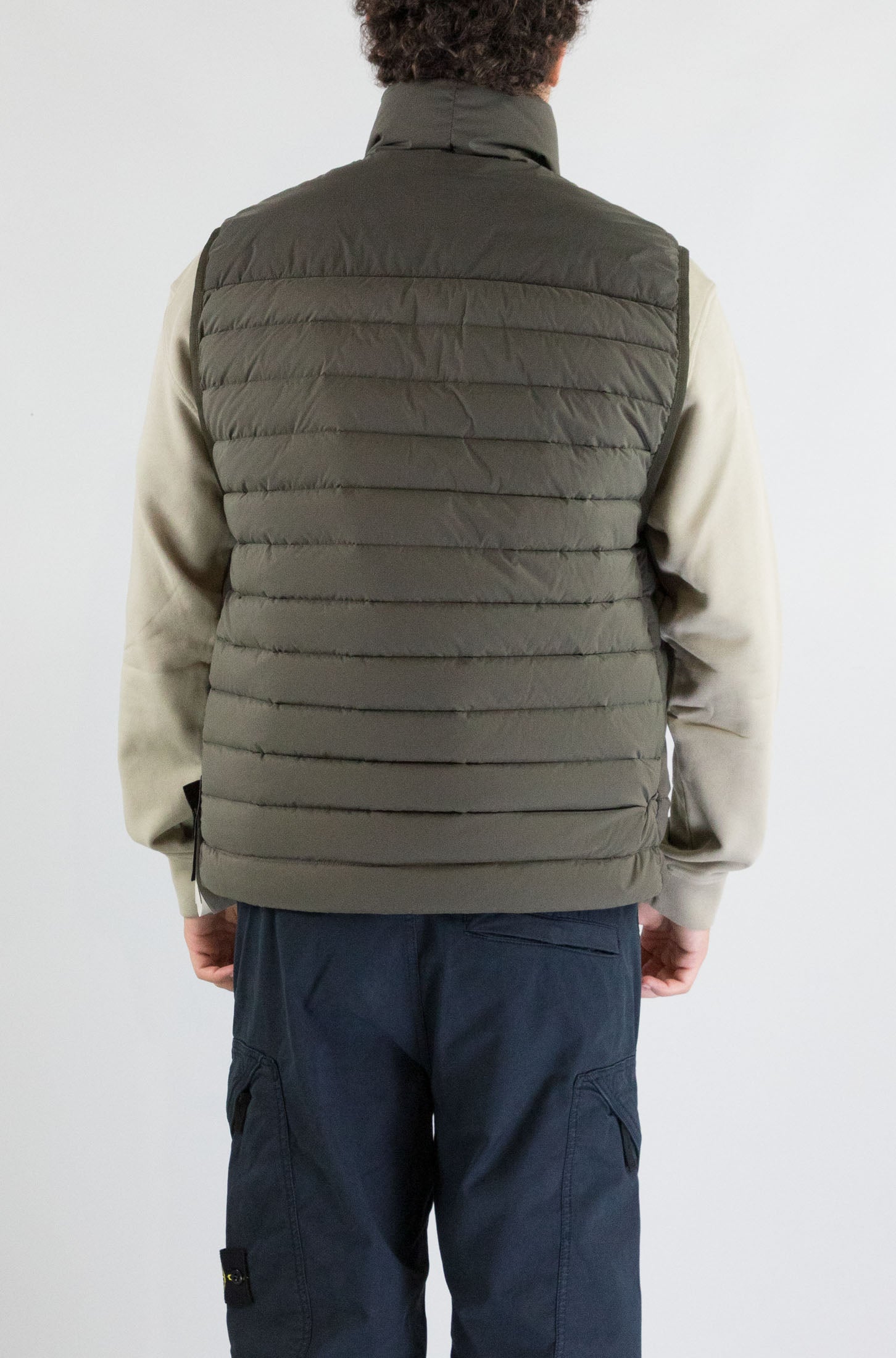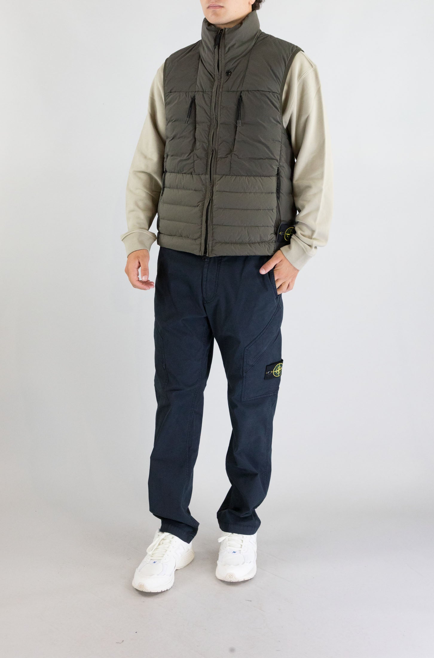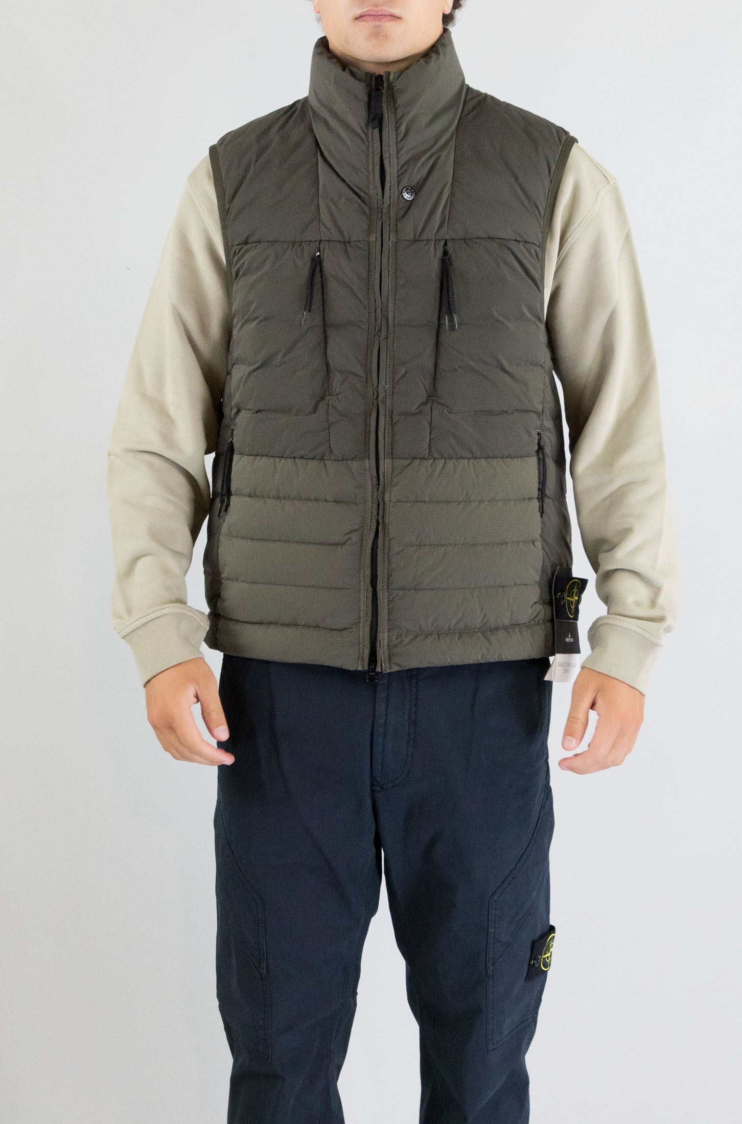 Il giubbotto verde smanicato Stone Island è un capo versatile che non può mancare nel guardaroba. Con colletto alto e chiusura a zip, è dotato di tasche laterali per un look pratico. Il logo badge sul fianco destro è un dettaglio distintivo del brand. Realizzato in un mix di 86% poliammide e 14% elastan, offre una vestibilità comoda e funzionale. Il modello indossa la taglia L.