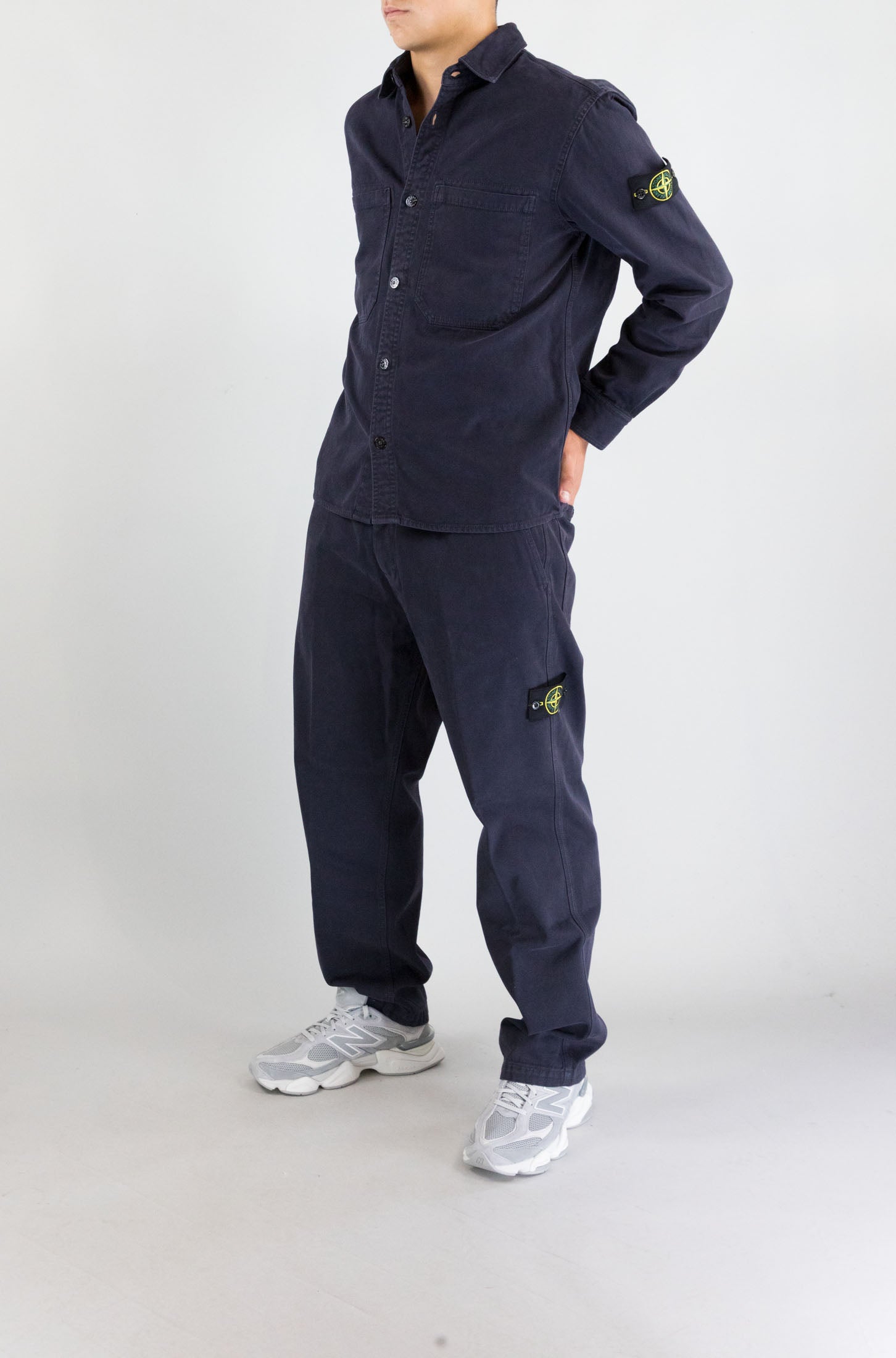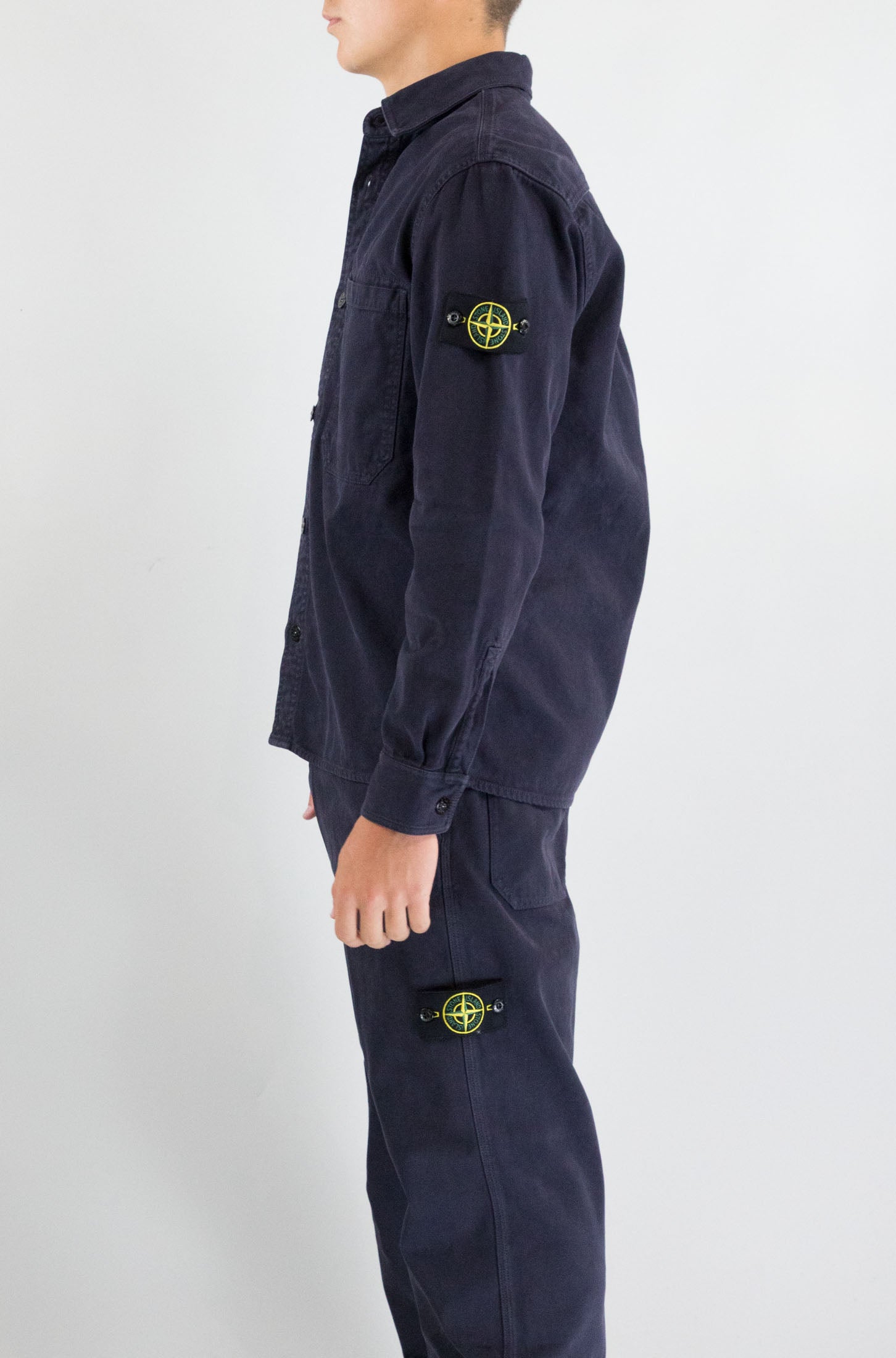 Pulizia delle linee e materiali di qualità. La camicia blu notte Stone Island, con doppia tasca frontale e logo sulla manica, è un capo dal fascino tecnico e contemporaneo, perfetto per l’uso quotidiano.