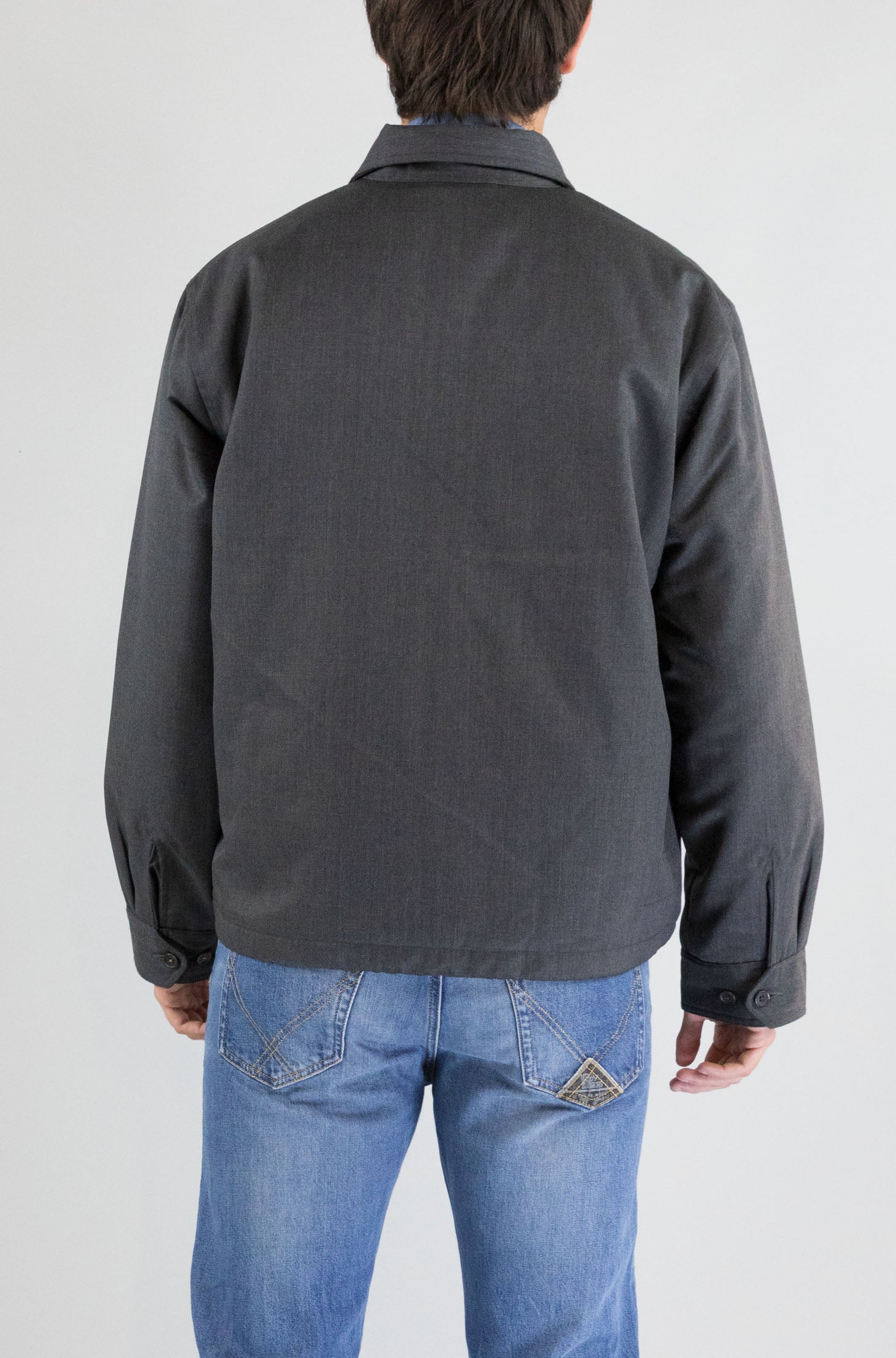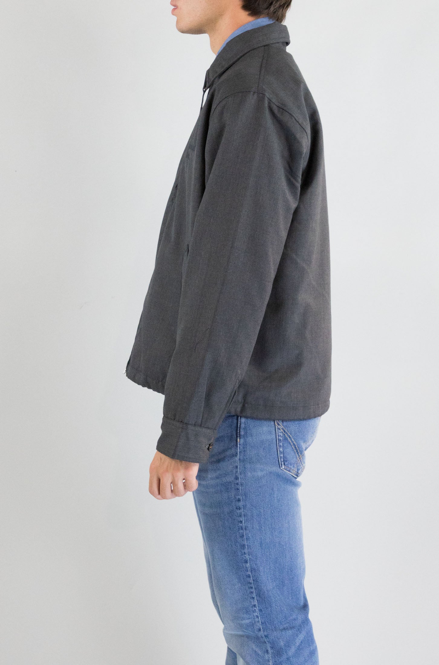 Minimalismo urbano. Il giubbotto grigio Universal Works è un capospalla versatile e contemporaneo, con chiusura a zip, colletto classico e tasche laterali. Un design pulito in tessuto tecnico.