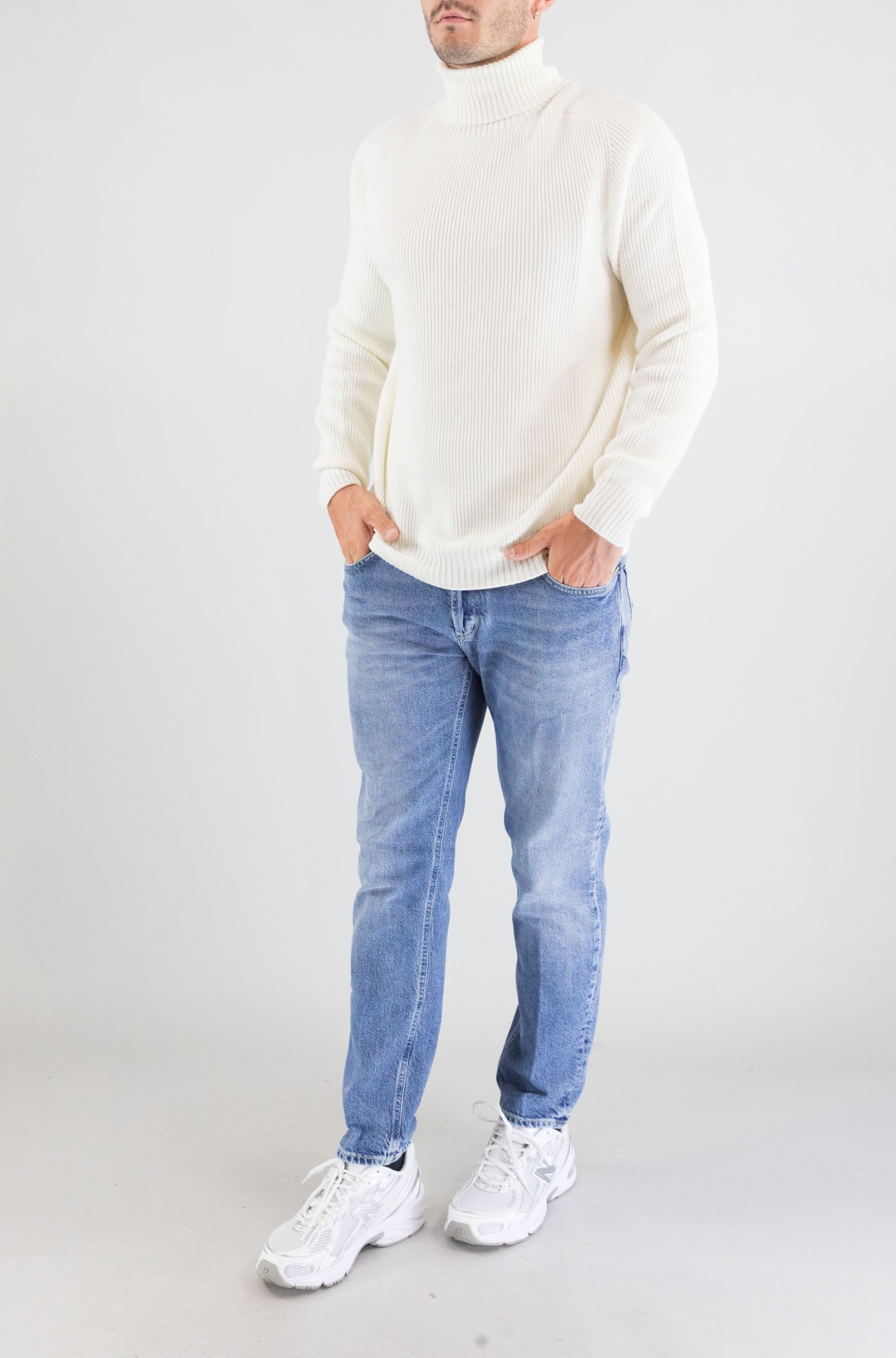Purezza e protezione in un unico capo. Questa maglia bianca Amaranto a costine è dotata di un elegante collo alto che avvolge senza costrizioni. In lana naturale, è ideale per gli amanti dei look minimal e sofisticati.