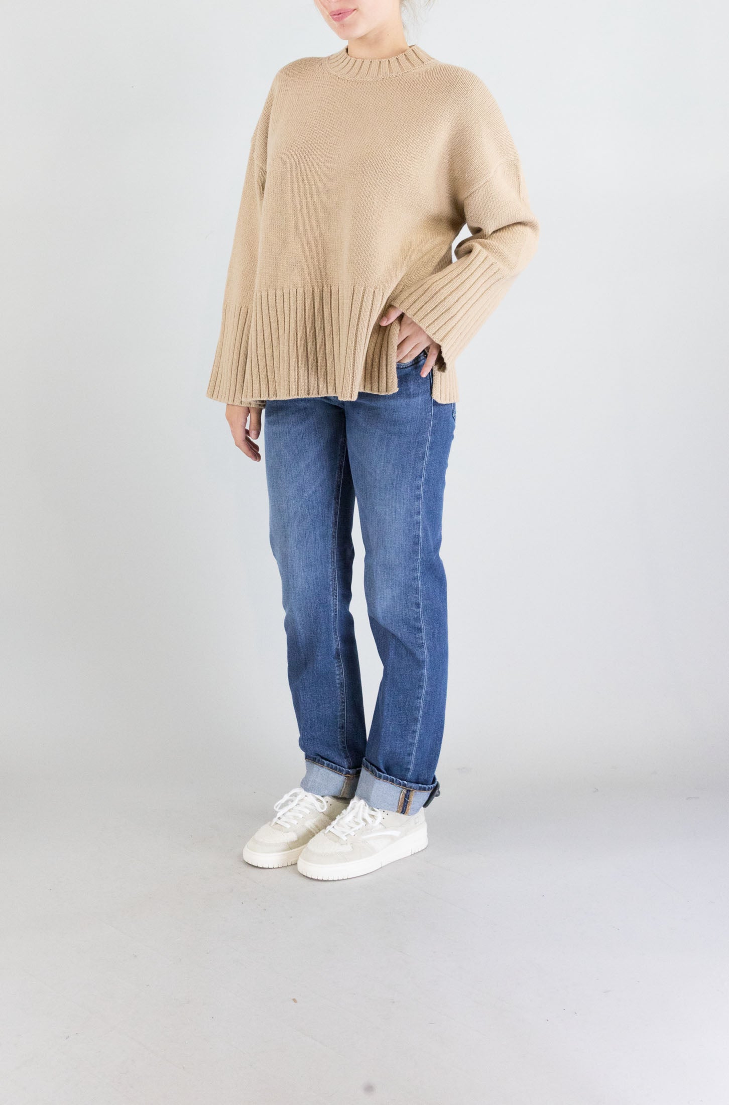 Calore e naturalezza. Maglia beige Barbour a maniche lunghe con lavorazione a costine e collo rotondo. Il filato misto cotone e lana garantisce un comfort avvolgente e traspirante, perfetto per l'autunno e l'inverno.