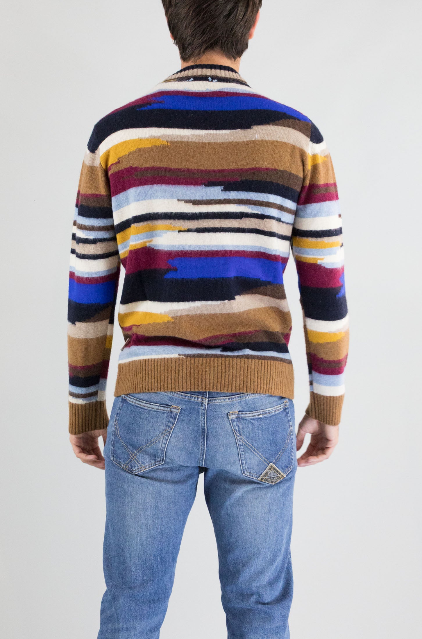 Un arcobaleno d’inverno. Questa maglia multicolor Bob, in pura lana vergine, dona carattere e calore al look grazie alla texture morbida, al collo rotondo e agli orli a costine. Un capo che non passa inosservato.
