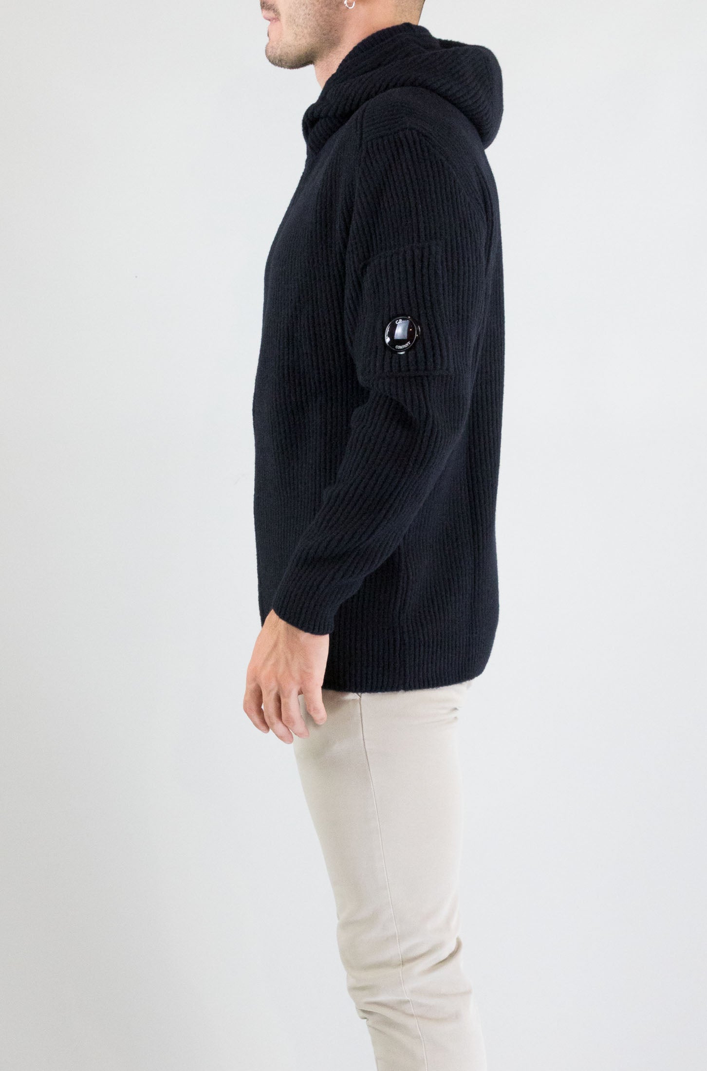 Texture a costine e spirito deciso. Questa felpa nera CP Company con cappuccio e zip è realizzata in un blend caldo e strutturato, impreziosita dal logo badge sul braccio sinistro.