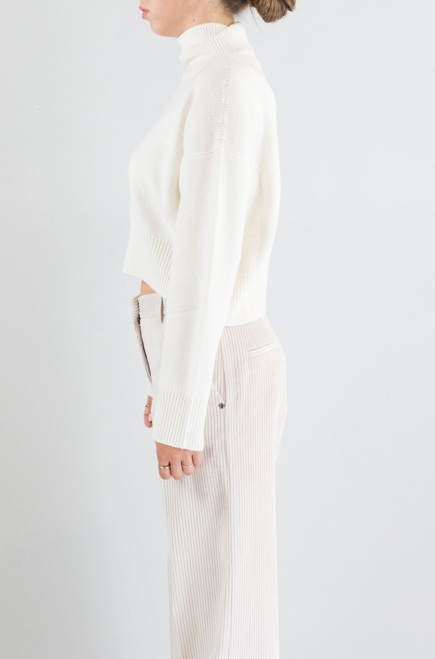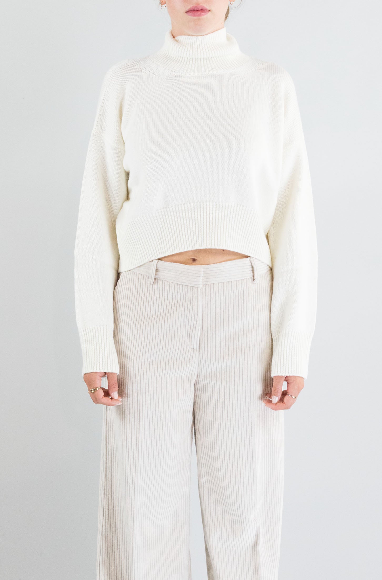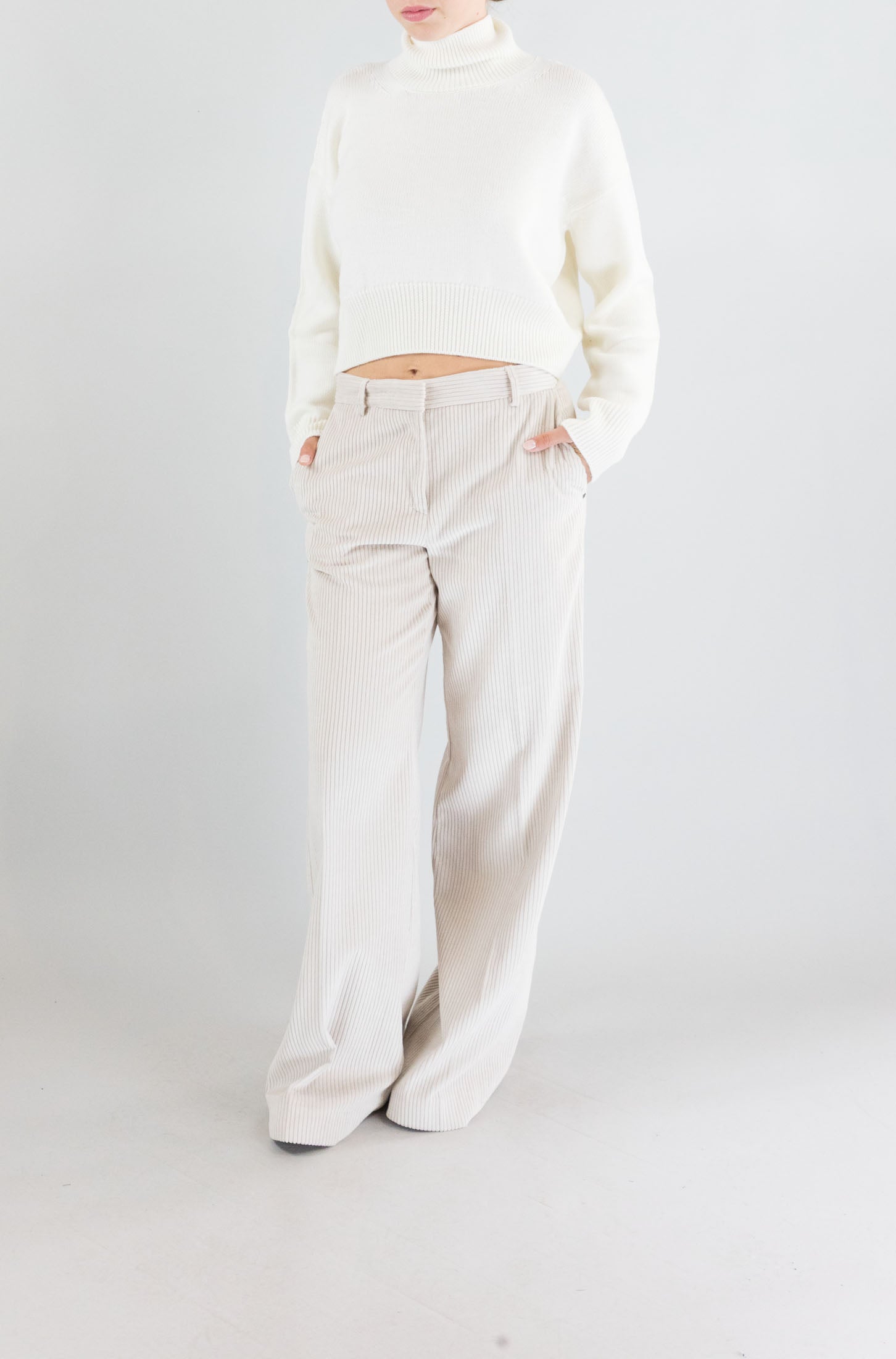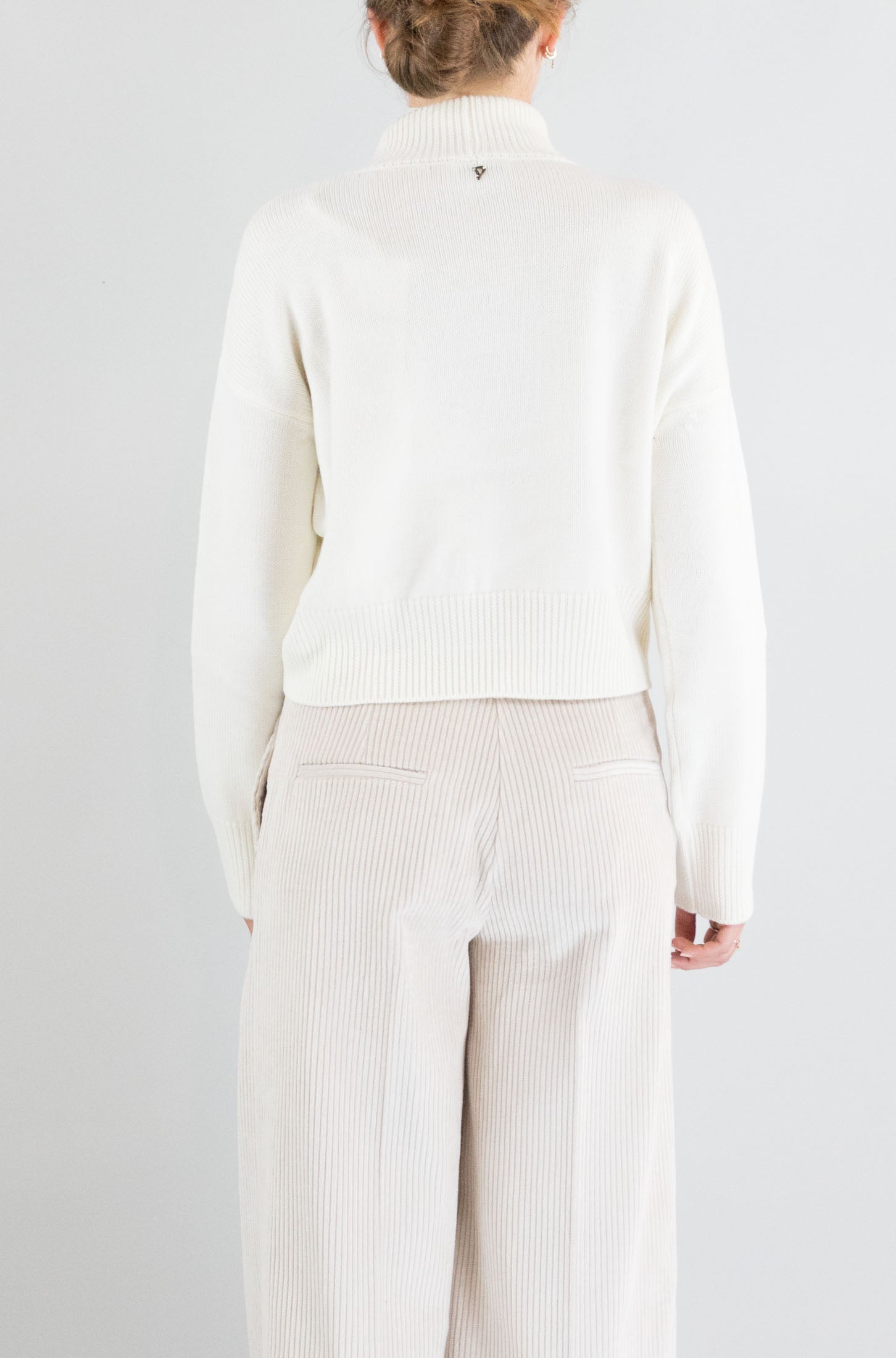 Minimalista e raffinata, questa maglia bianca Dondup esalta le linee pulite e le texture naturali. Il colletto alto e le costine donano struttura a un capo intramontabile.