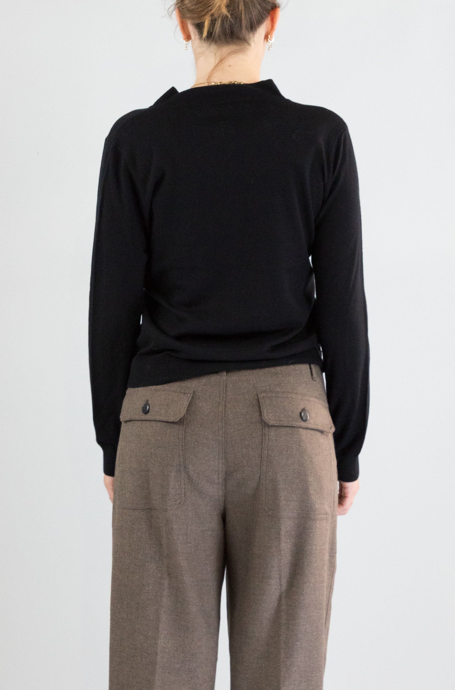Un classico intramontabile. Maglia nera a manica lunga firmata Nice Things, con collo rotondo e linea essenziale. Realizzata in pura lana per un calore naturale ed elegante.