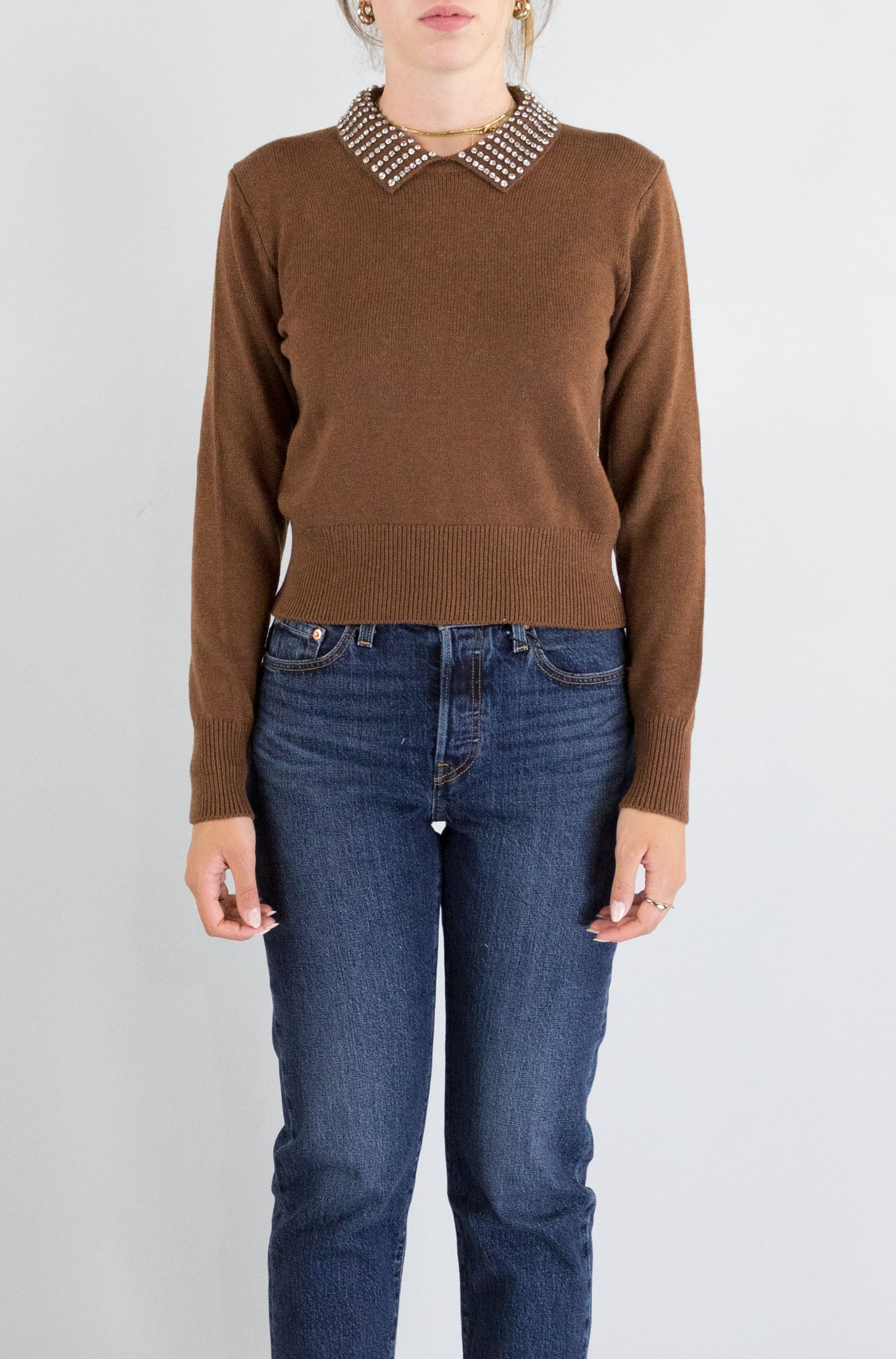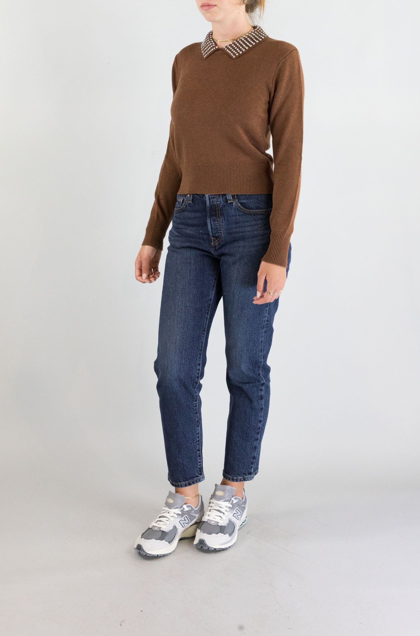 Con un design semplice ma ricercato, la maglia marrone Pinko presenta un colletto con mini borchie che ne accentua la raffinatezza. Realizzata in 100% lana vergine, la maglia assicura morbidezza e calore, rendendola ideale per il periodo autunnale o invernale. Le maniche lunghe completano il look elegante ma disinvolto. La modella indossa la taglia S.