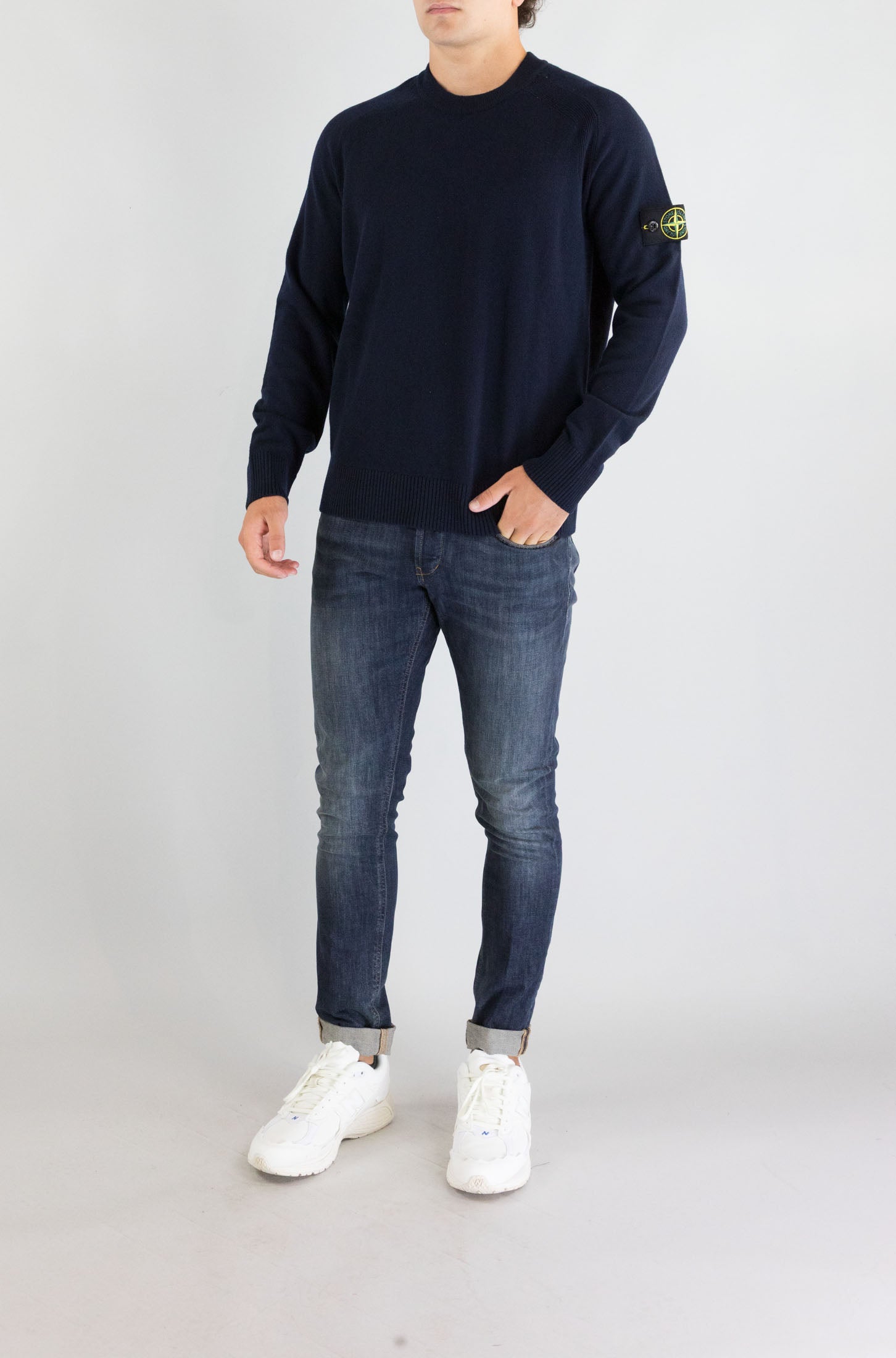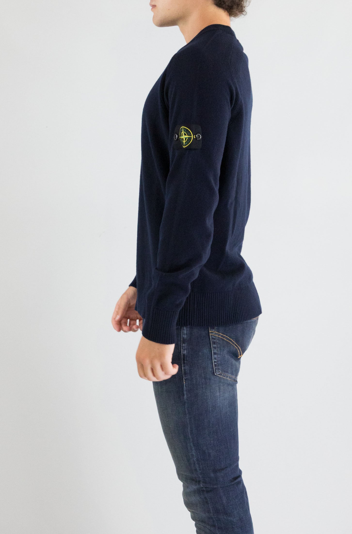 Questa maglia blu notte Stone Island è un must-have per un look casual ma ricercato. Con manica lunga e collo tondo, il design semplice ma elegante è impreziosito dal logo badge sul braccio sinistro. Il tessuto in 100% lana vergine garantisce un comfort assoluto, rendendola perfetta per qualsiasi occasione. Il modello indossa la taglia L.