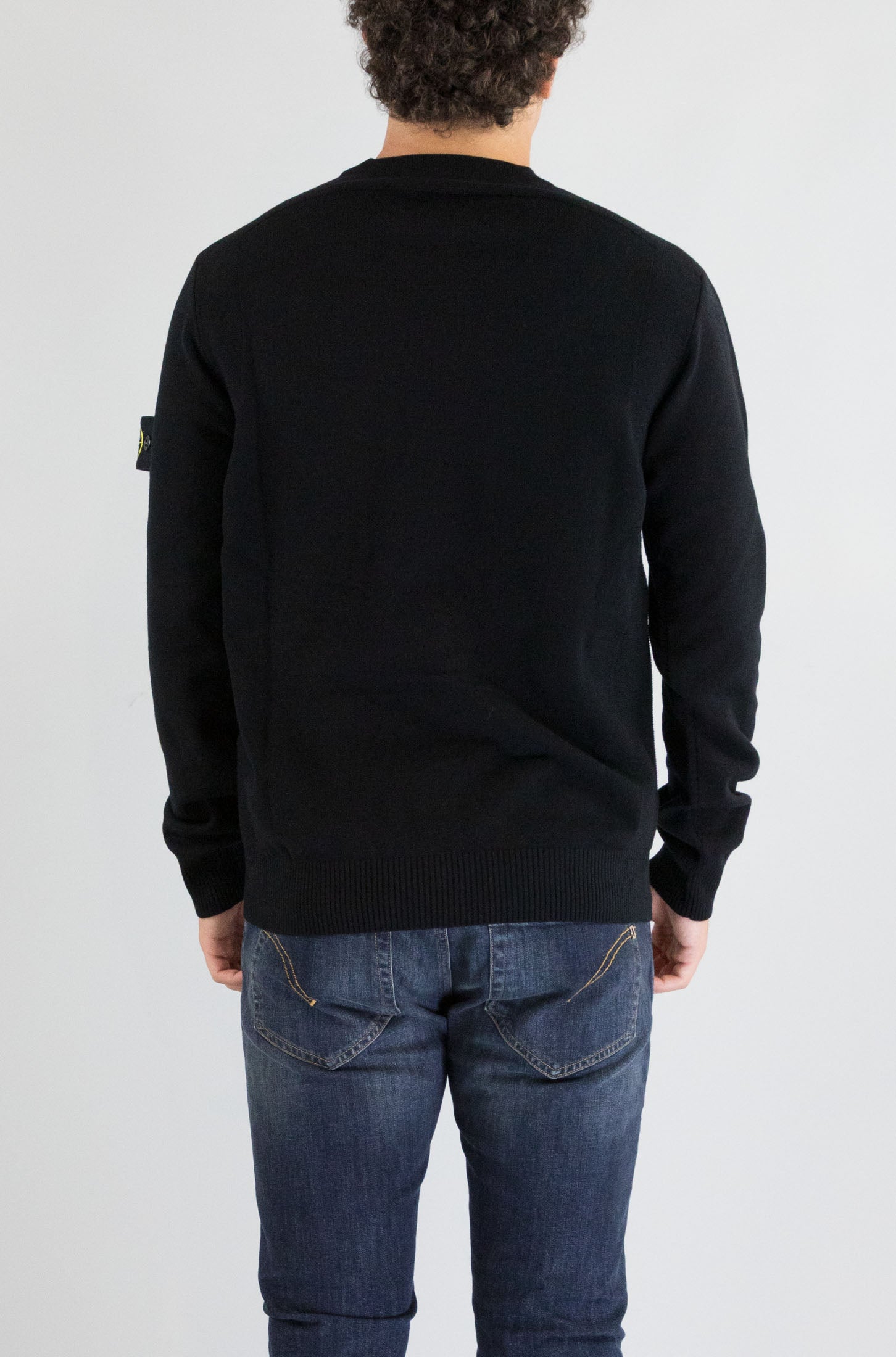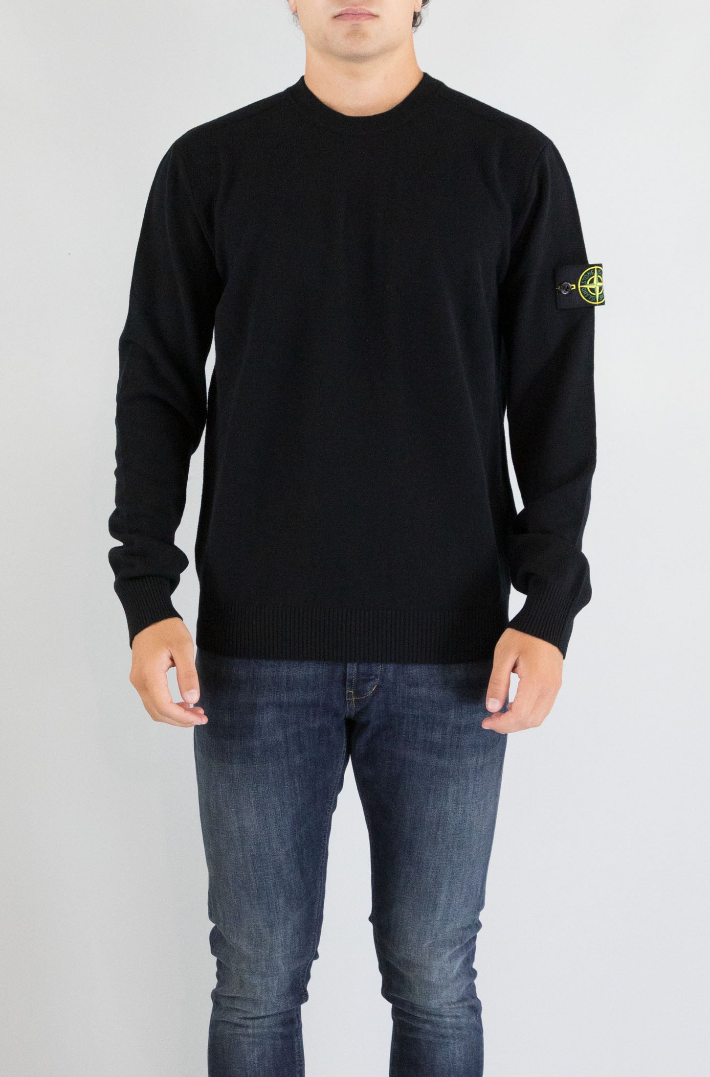 Questa maglia nera Stone Island, caratterizzata da un design semplice e sofisticato, è realizzata in un mix di 88% lana vergine e 12% poliestere, che la rende morbida e calda. Il logo badge sul braccio sinistro conferisce un tocco distintivo, rendendo il capo perfetto per un look casual e ricercato. La manica lunga e il collo tondo la rendono ideale per le stagioni più fresche. Il modello indossa la taglia L.