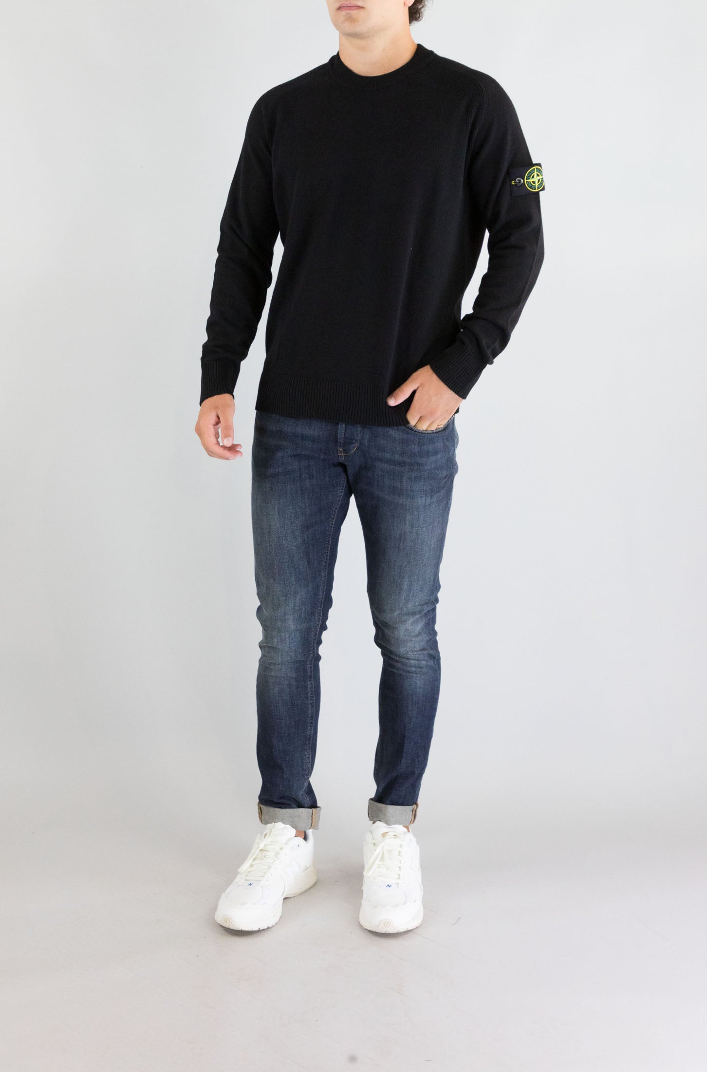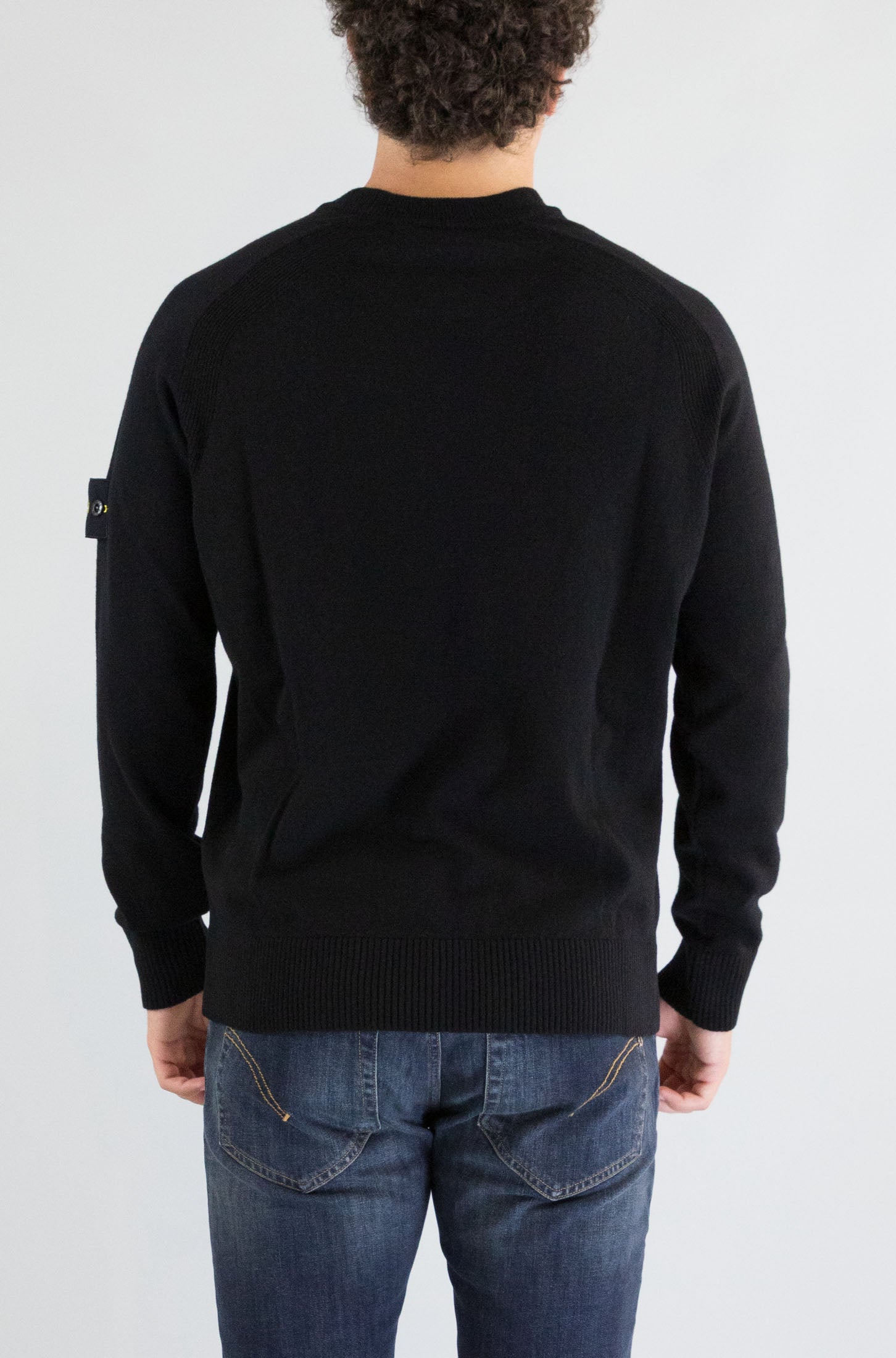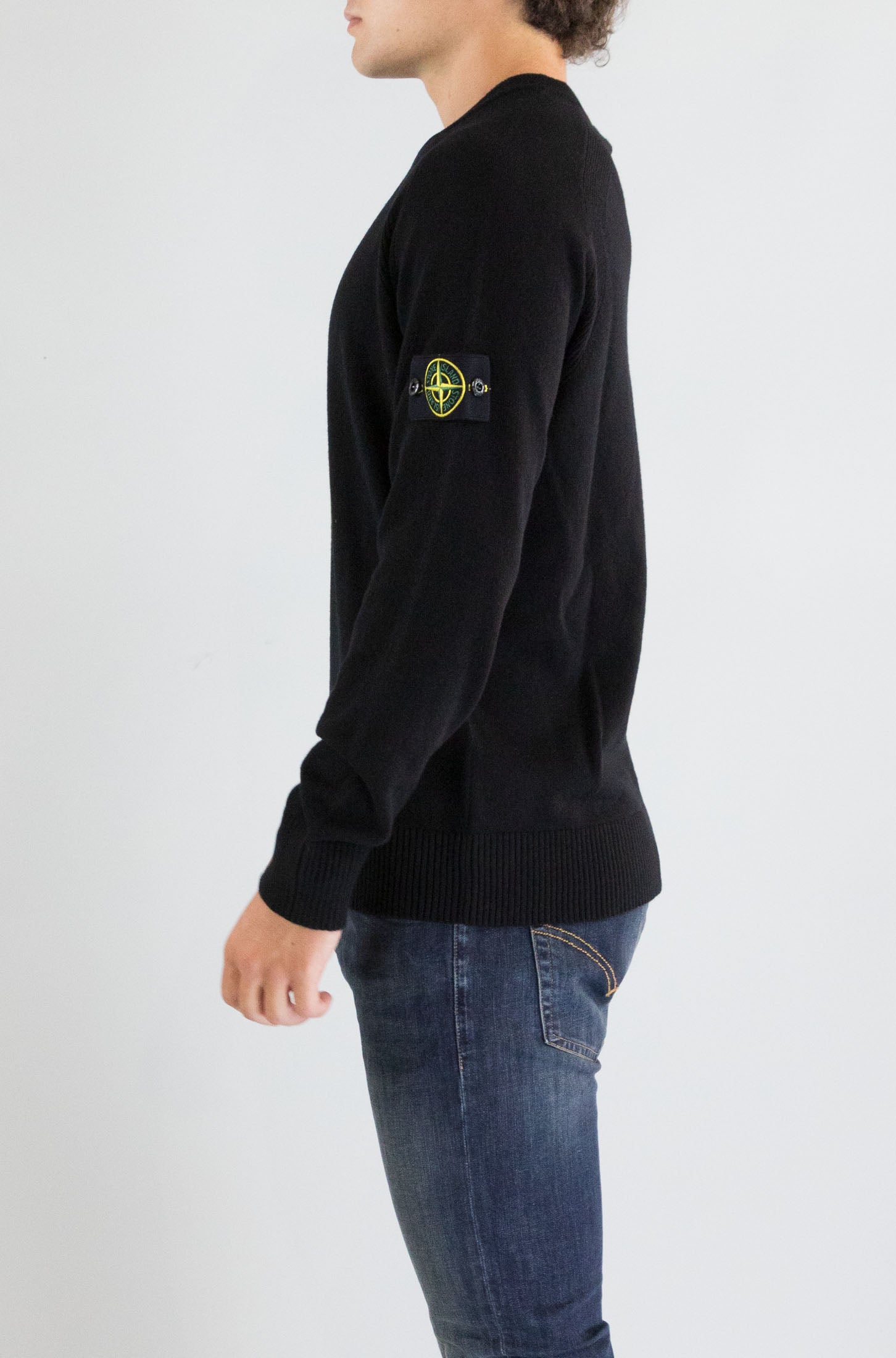 La maglia nera Stone Island con manica lunga e collo tondo è un capo intramontabile che non può mancare nel tuo guardaroba. Il logo badge sul braccio sinistro aggiunge un dettaglio distintivo, mentre il tessuto in 100% lana vergine garantisce un comfort assoluto. Perfetta per essere indossata da sola o sotto giacche e cappotti, è un capo che unisce eleganza e funzionalità. Il modello indossa la taglia L.