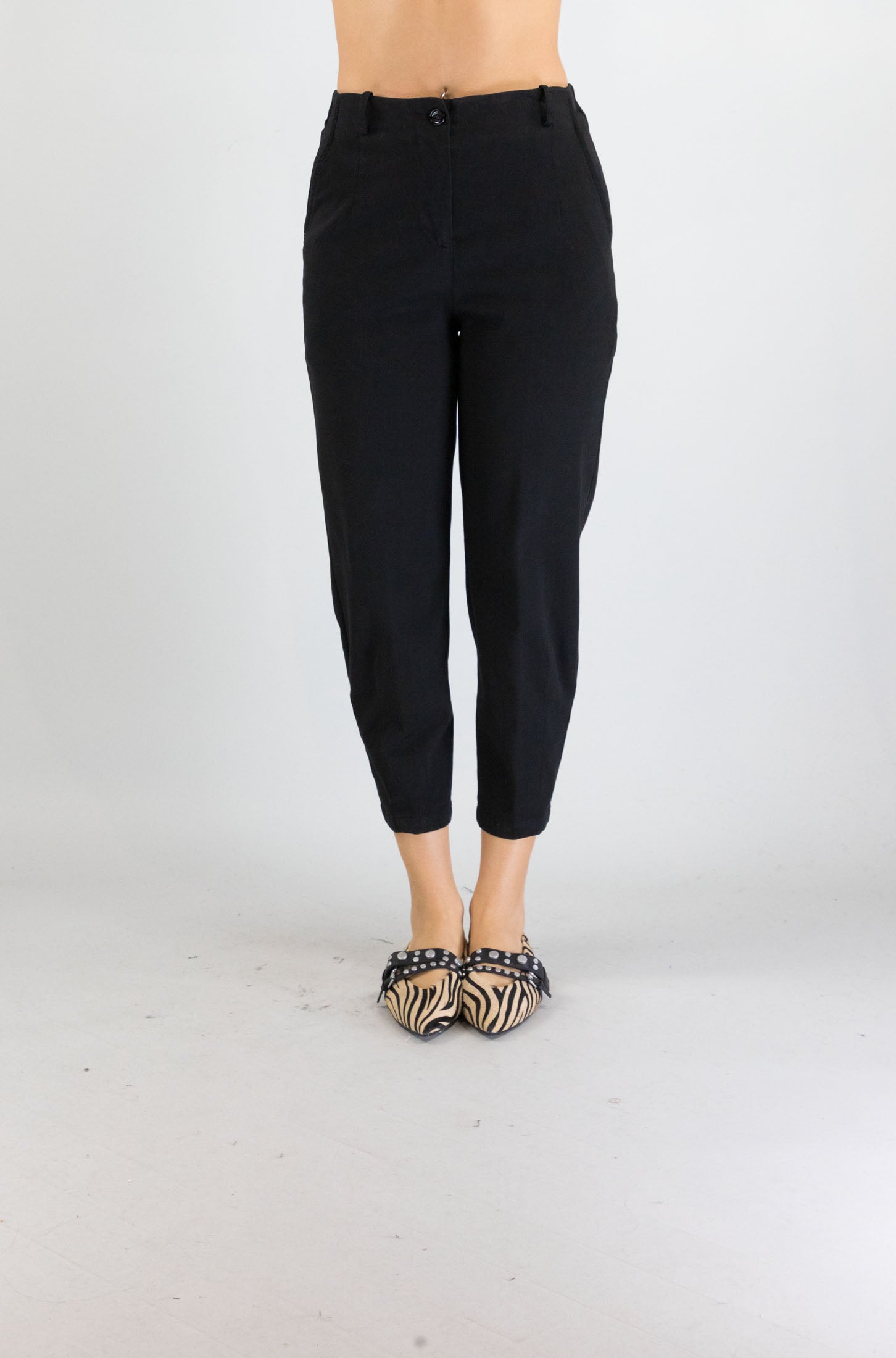 Un classico intramontabile. Il pantalone nero Alessia Santi, a vita alta e con taglio sopra la caviglia, valorizza la silhouette con eleganza e comfort. Perfetto per look da ufficio o outfit serali raffinati.