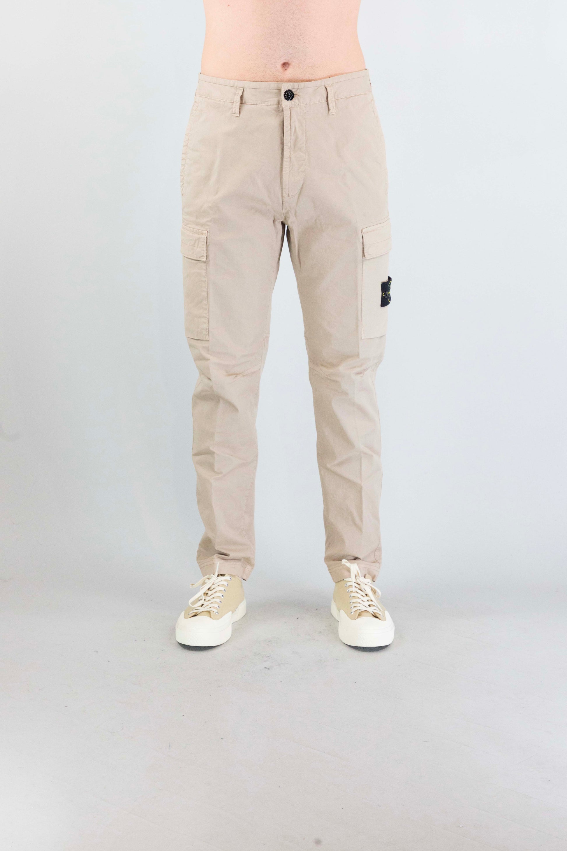 Funzionalità e design si incontrano. Il pantalone beige Stone Island con badge laterale interpreta lo stile tecnico del brand con una vestibilità confortevole e moderna.