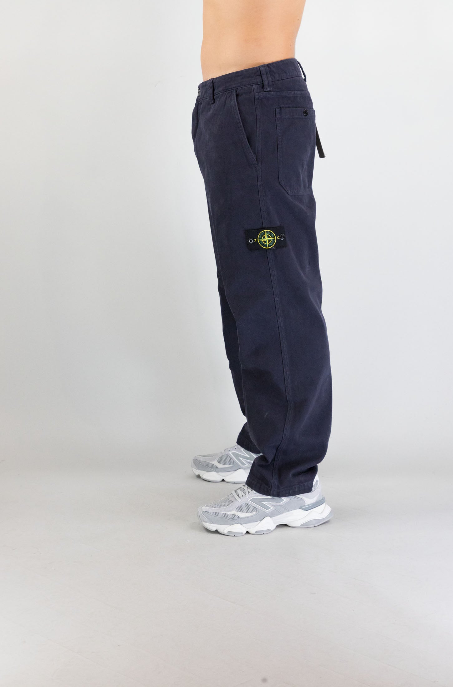 Essenziale e contemporaneo. Il pantalone blu Stone Island, con chiusura a bottone e tasche laterali, unisce praticità e design pulito. Il logo badge laterale aggiunge un tocco distintivo a un capo dal comfort superiore.