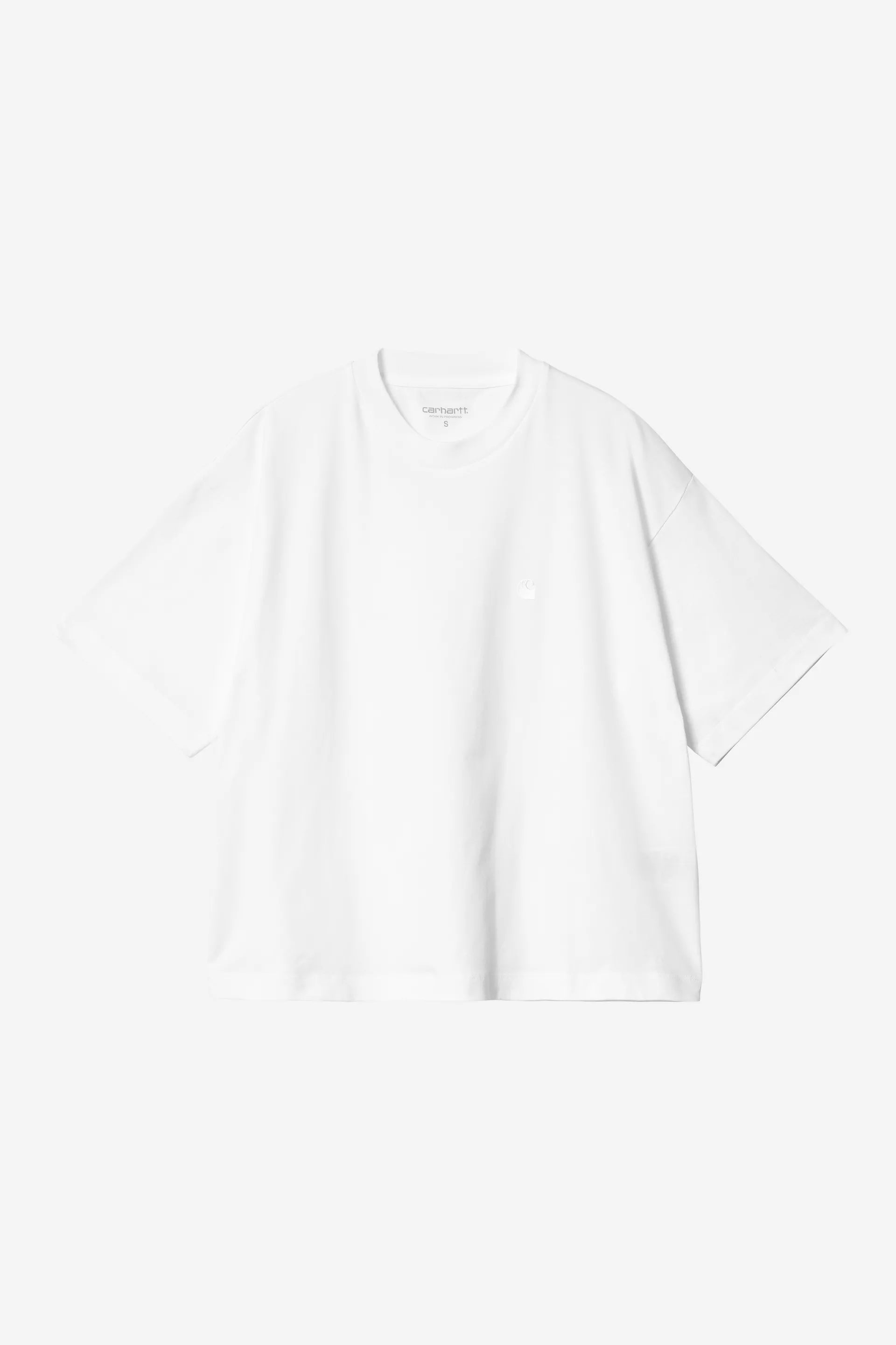 Realizzata in leggero jersey di cotone biologico con vestibilità ampia, la Women’s S/S Chester T-Shirt è un modello corto con spalle scese. Il modello è impreziosito dal ricamo tinta unita del logo “C” di Carhartt WIP.