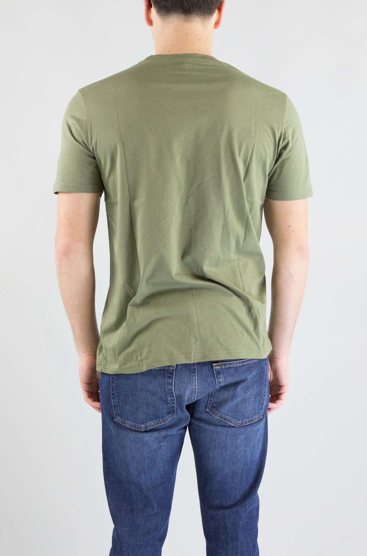 T-shirt verde con manica corta e collo rotondo, caratterizzata dal mini logo sul petto che dona un tocco di stile minimalista. Realizzata in 100% cotone, è ideale per chi cerca una t-shirt comoda e versatile, perfetta per tutti i giorni. Il modello indossa la taglia L.