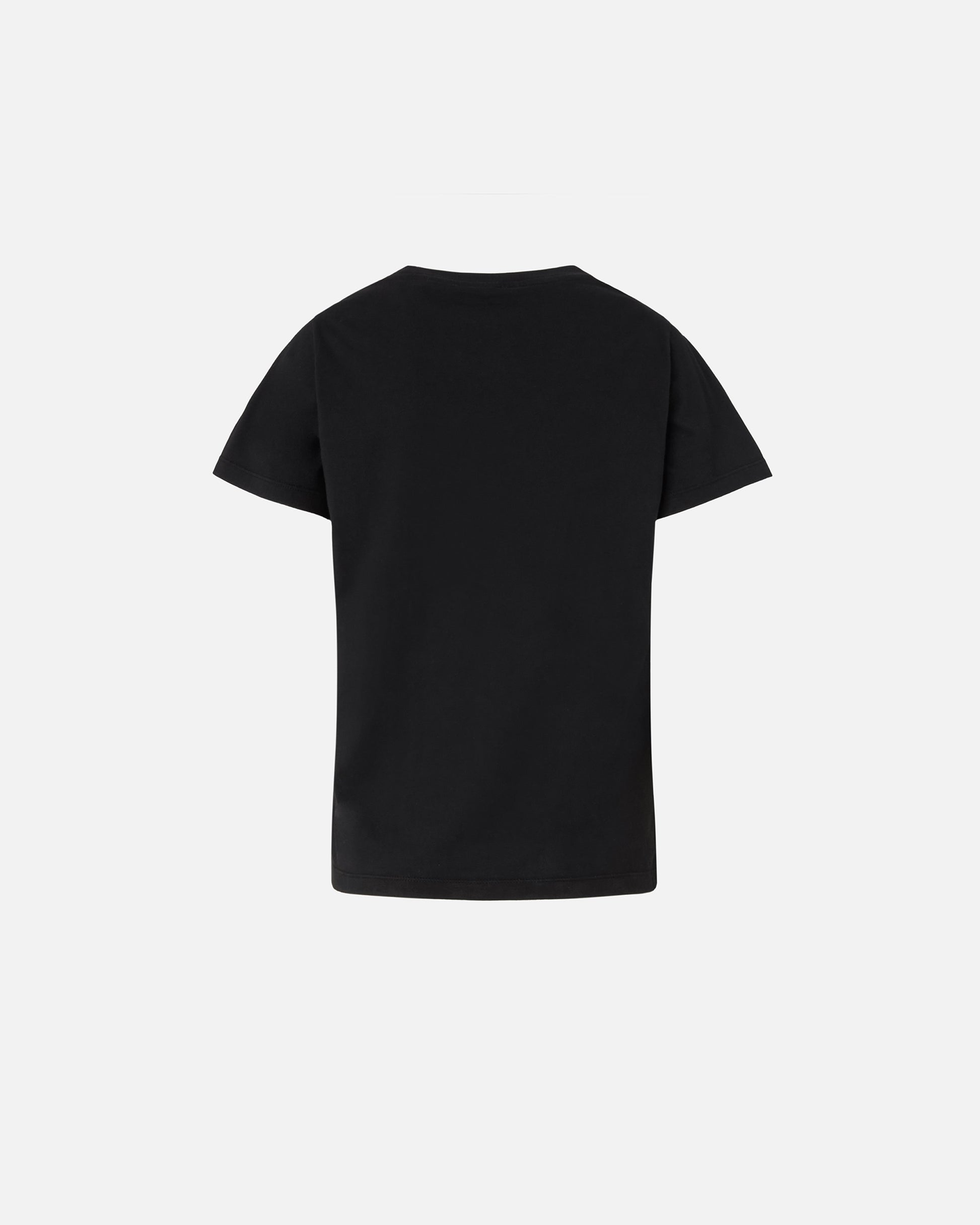 T-shirt a maniche corte in jersey di cotone trattamento old wash personalizzata con stampa mini logo PINKO centrale davanti.